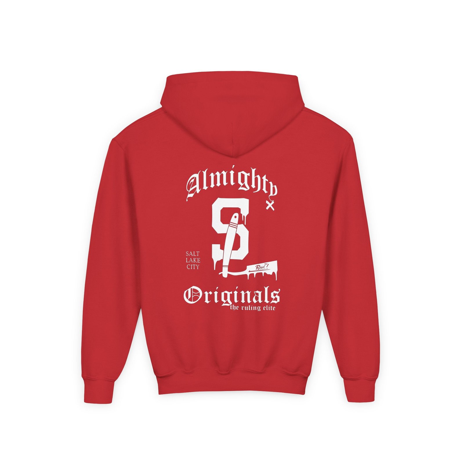 Soft, comfy, and a little bit mischievous — this youth Almighty Originals Collab hoodie brings bright, playful energy to everyday wear. A drippy gradient smiley sits on the chest in neon orange-to-pink, framed by bold lettering that gives the design attitude without shouting. The midweight fabric holds its shape and keeps kids cozy through playground runs, chilly school mornings, and weekend hangouts. Thoughtful details like a roomy kangaroo pocket and twill neck tape make it durable and comfortable, while print and embroidery options let you add a custom touch. It’s the kind of hoodie that becomes a go-to for active days and casual adventures.