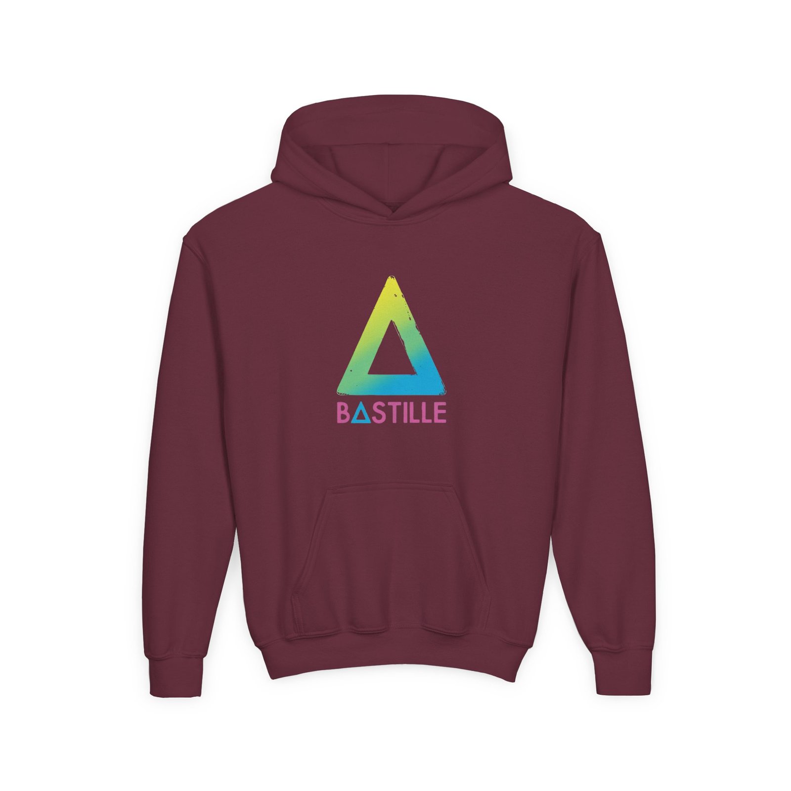 Soft, comfy, and a little bit mischievous — this youth Bastille Rainbow Logo hoodie brings bright, playful energy to everyday wear. A drippy gradient smiley sits on the chest in neon orange-to-pink, framed by bold lettering that gives the design attitude without shouting. The midweight fabric holds its shape and keeps kids cozy through playground runs, chilly school mornings, and weekend hangouts. Thoughtful details like a roomy kangaroo pocket and twill neck tape make it durable and comfortable, while print and embroidery options let you add a custom touch. It’s the kind of hoodie that becomes a go-to for active days and casual adventures.