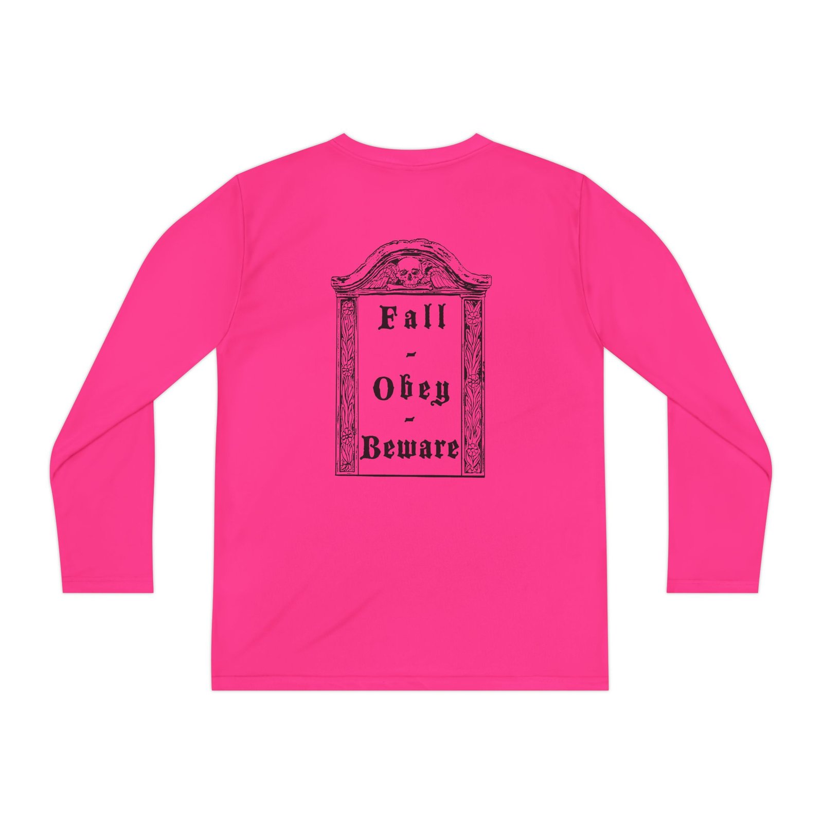Youth Bewitcher Fall. Obey. Beware. Long Sleeve Competitor Tee