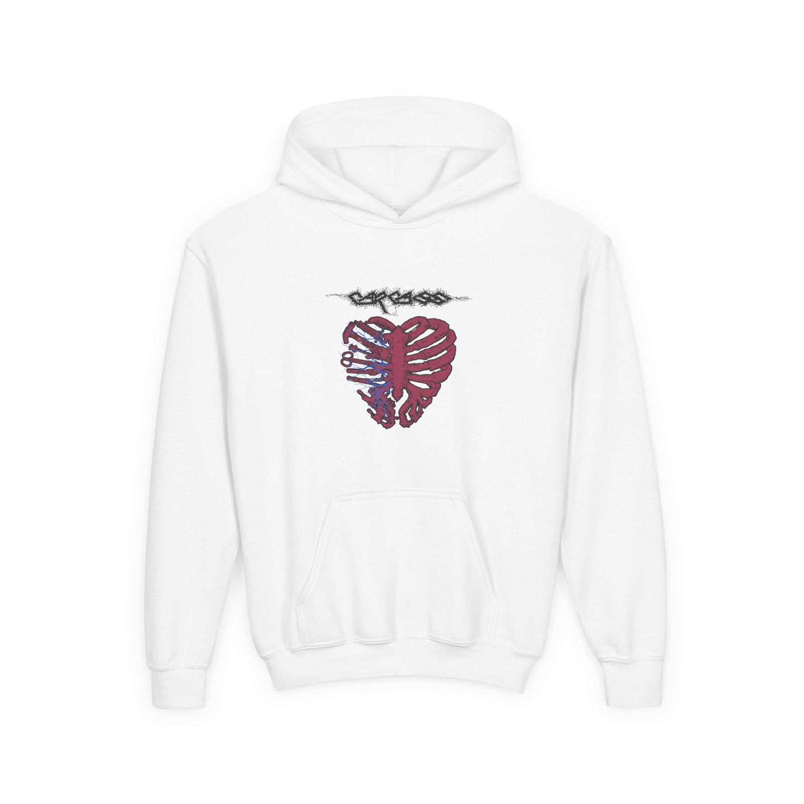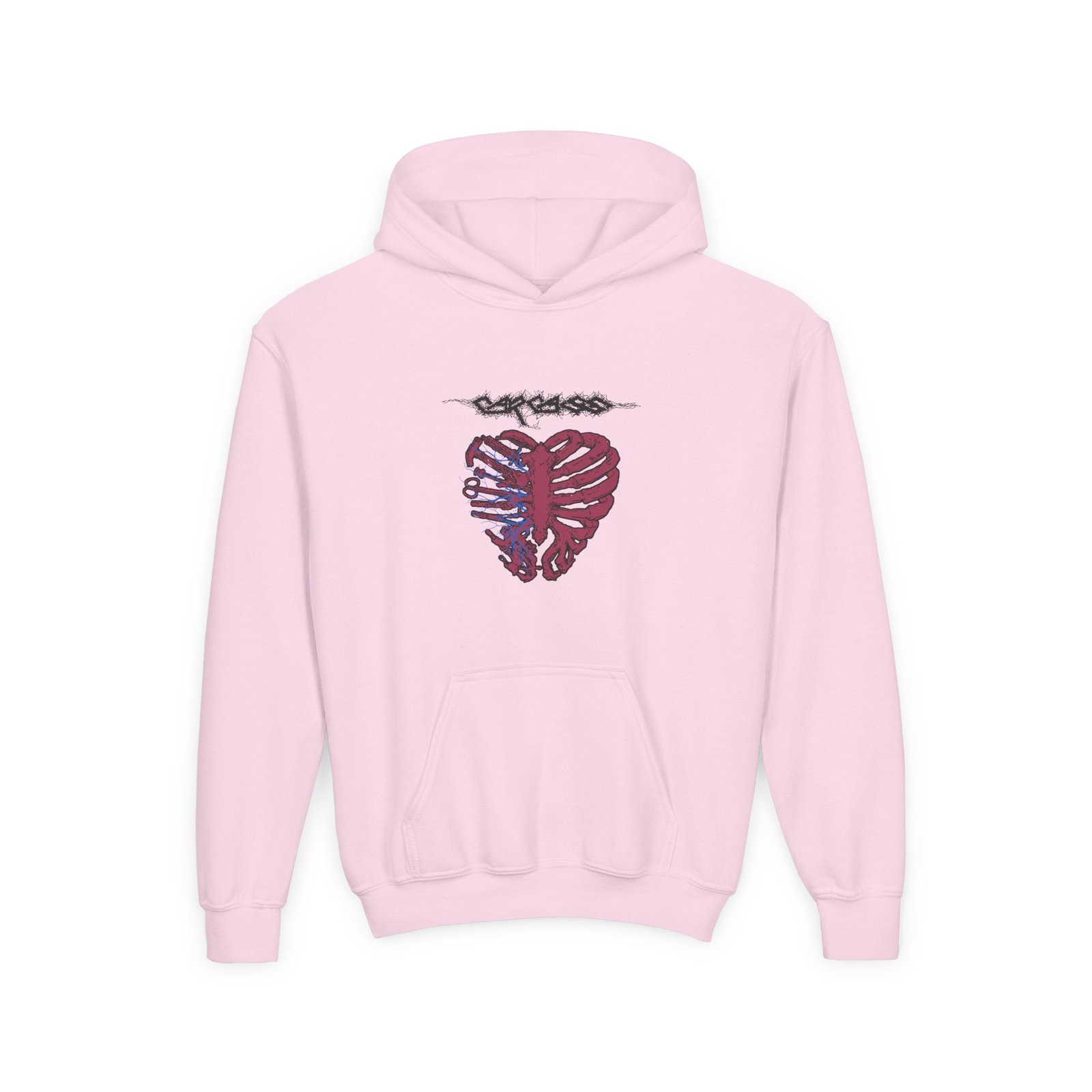 Soft, comfy, and a little bit mischievous — this youth Carcass hoodie brings bright, playful energy to everyday wear. A drippy gradient smiley sits on the chest in neon orange-to-pink, framed by bold lettering that gives the design attitude without shouting. The midweight fabric holds its shape and keeps kids cozy through playground runs, chilly school mornings, and weekend hangouts. Thoughtful details like a roomy kangaroo pocket and twill neck tape make it durable and comfortable, while print and embroidery options let you add a custom touch. It’s the kind of hoodie that becomes a go-to for active days and casual adventures.