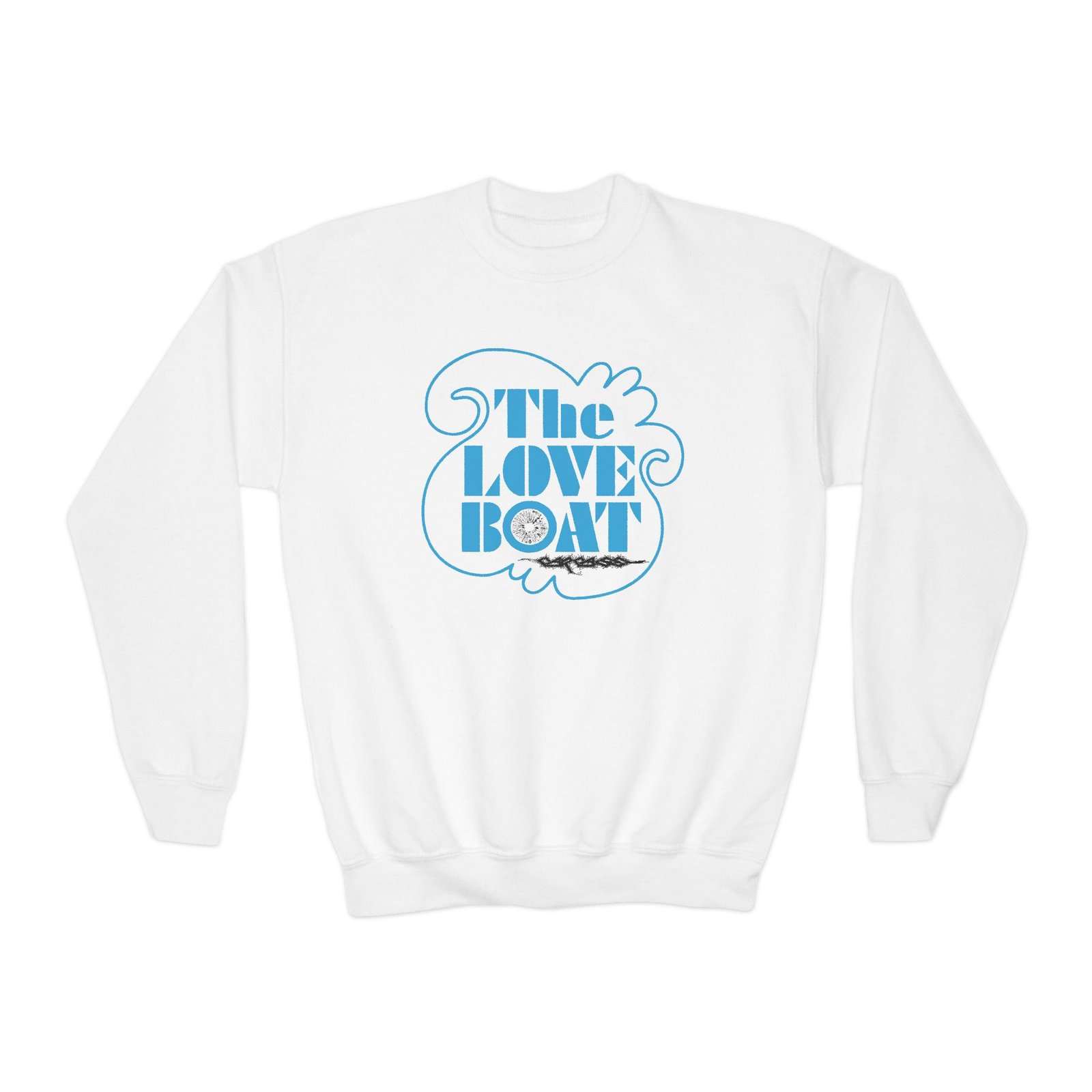 This loose-fit youth Carcass Love Boat Tee crewneck brings moody, occult-inspired style to everyday wear. A storm-lit silhouette and grainy, moonlit scene sit beneath hand-lettered gothic text in bruised purple — a look that reads like a midnight zine spread. The sweatshirt’s medium-heavy knit feels substantial without weighing down small frames, and the ribbed collar and cuffs hold their shape through play and repeat washes. Let this crew be the quiet centerpiece of a darker wardrobe: layered over band tees, hoodies, or under a denim jacket for a city-night vibe that leans mysterious and made-for-exploring.