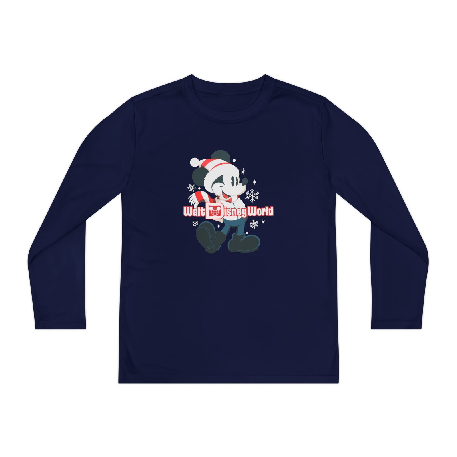 A lightweight Corey Scherer Disney Holiday Mickey long-sleeve designed for active kids who lean into darker, atmospheric style. The shirt’s smooth, moisture-wicking polyester keeps movement unhindered and dries fast after practice or a day outside. The front art drops into a stormy, grayscale scene crowned by a jagged flash of lightning and moody gothic lettering — a bold, quietly rebellious statement that pairs with skate nights, band practice, or just hanging with friends. The athletic cut skims the body for an energetic silhouette, while the tear-away label keeps comfort high. Warmth is balanced with breathability, so it layers easily under a jacket or wears solo on cooler evenings.