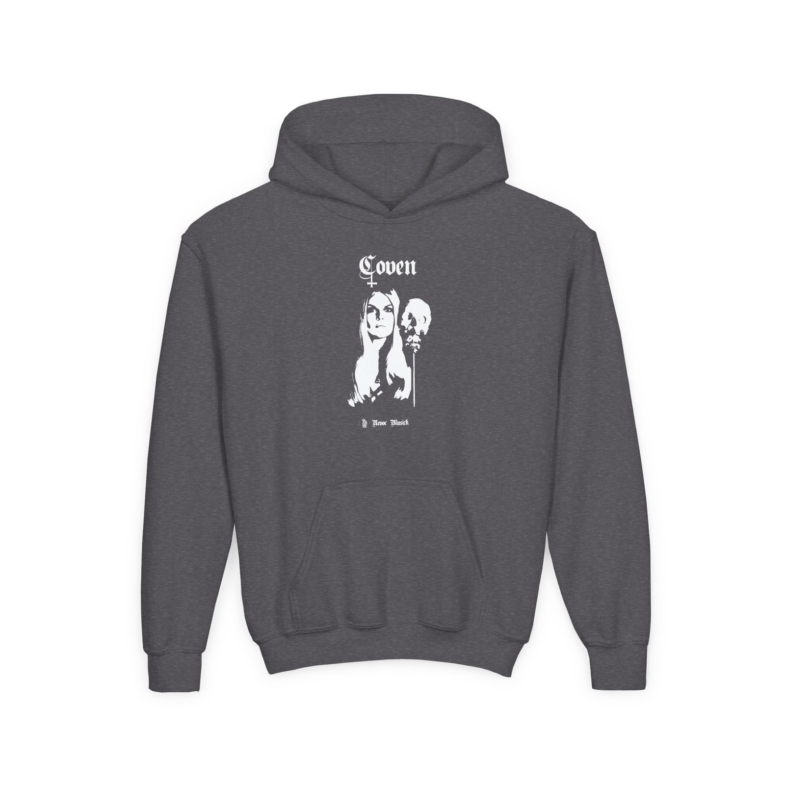 Soft, comfy, and a little bit mischievous — this youth Coven hoodie brings bright, playful energy to everyday wear. A drippy gradient smiley sits on the chest in neon orange-to-pink, framed by bold lettering that gives the design attitude without shouting. The midweight fabric holds its shape and keeps kids cozy through playground runs, chilly school mornings, and weekend hangouts. Thoughtful details like a roomy kangaroo pocket and twill neck tape make it durable and comfortable, while print and embroidery options let you add a custom touch. It’s the kind of hoodie that becomes a go-to for active days and casual adventures.