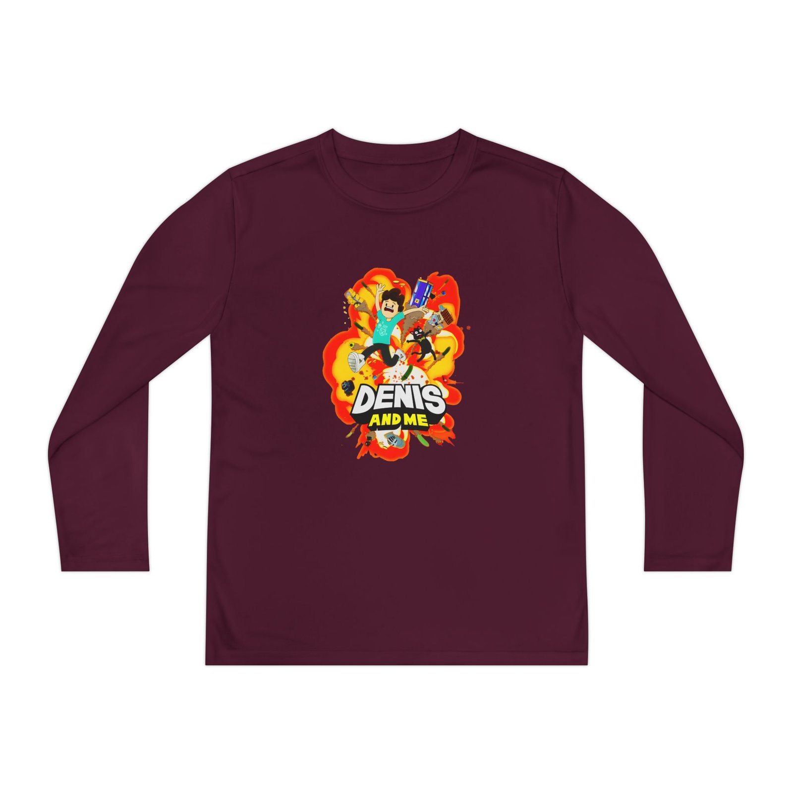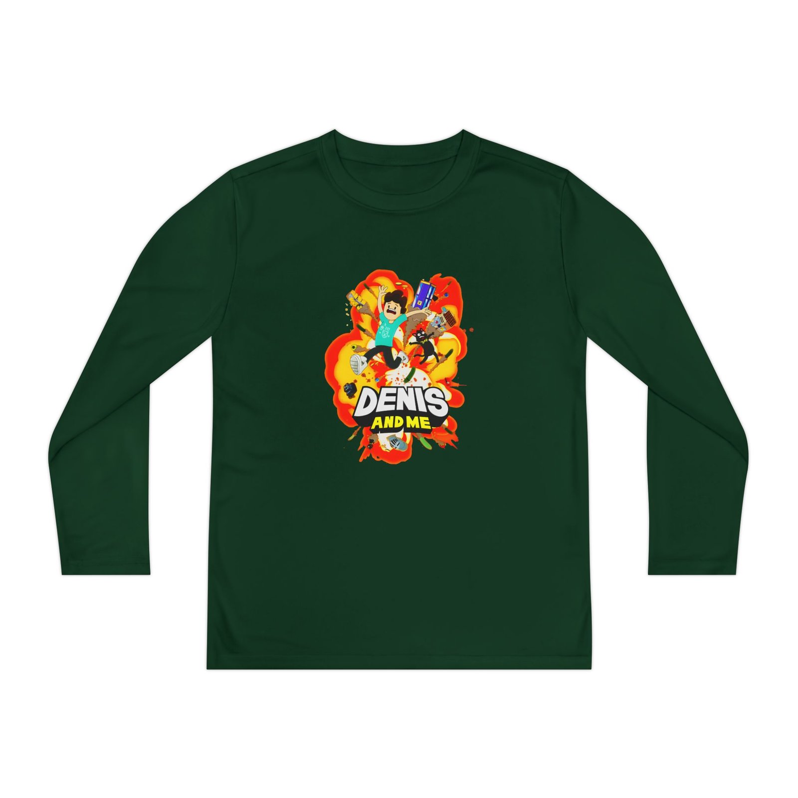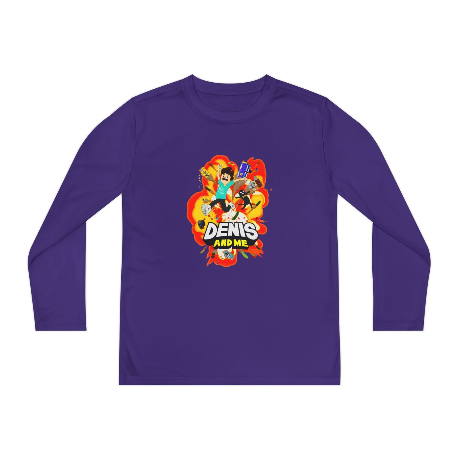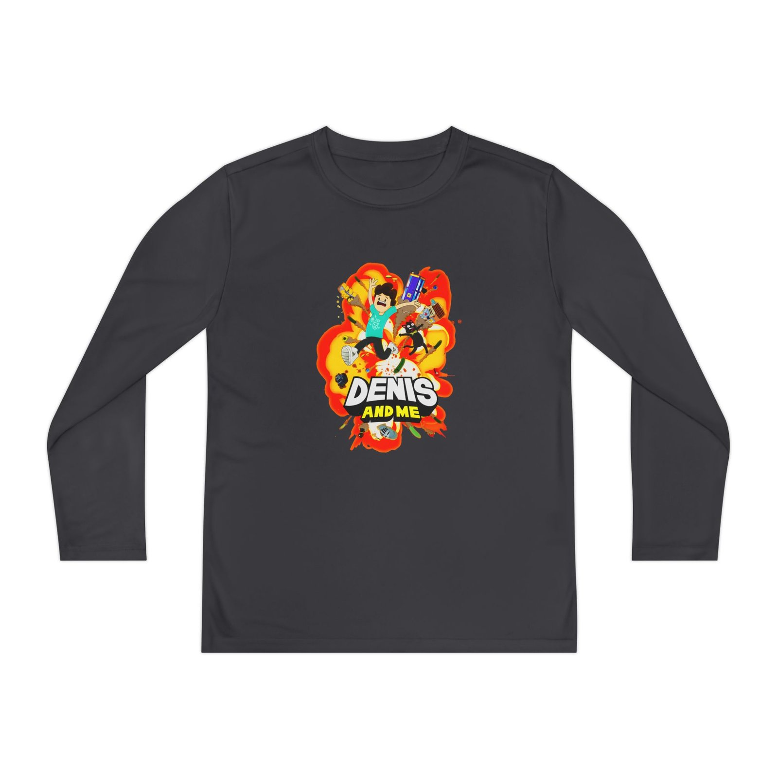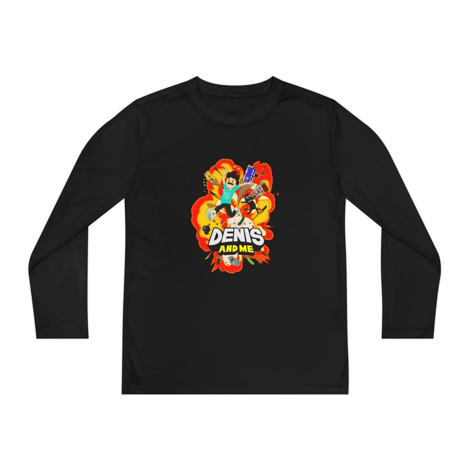 A lightweight Denisdaily Denis & Me long-sleeve designed for active kids who lean into darker, atmospheric style. The shirt’s smooth, moisture-wicking polyester keeps movement unhindered and dries fast after practice or a day outside. The front art drops into a stormy, grayscale scene crowned by a jagged flash of lightning and moody gothic lettering — a bold, quietly rebellious statement that pairs with skate nights, band practice, or just hanging with friends. The athletic cut skims the body for an energetic silhouette, while the tear-away label keeps comfort high. Warmth is balanced with breathability, so it layers easily under a jacket or wears solo on cooler evenings.
