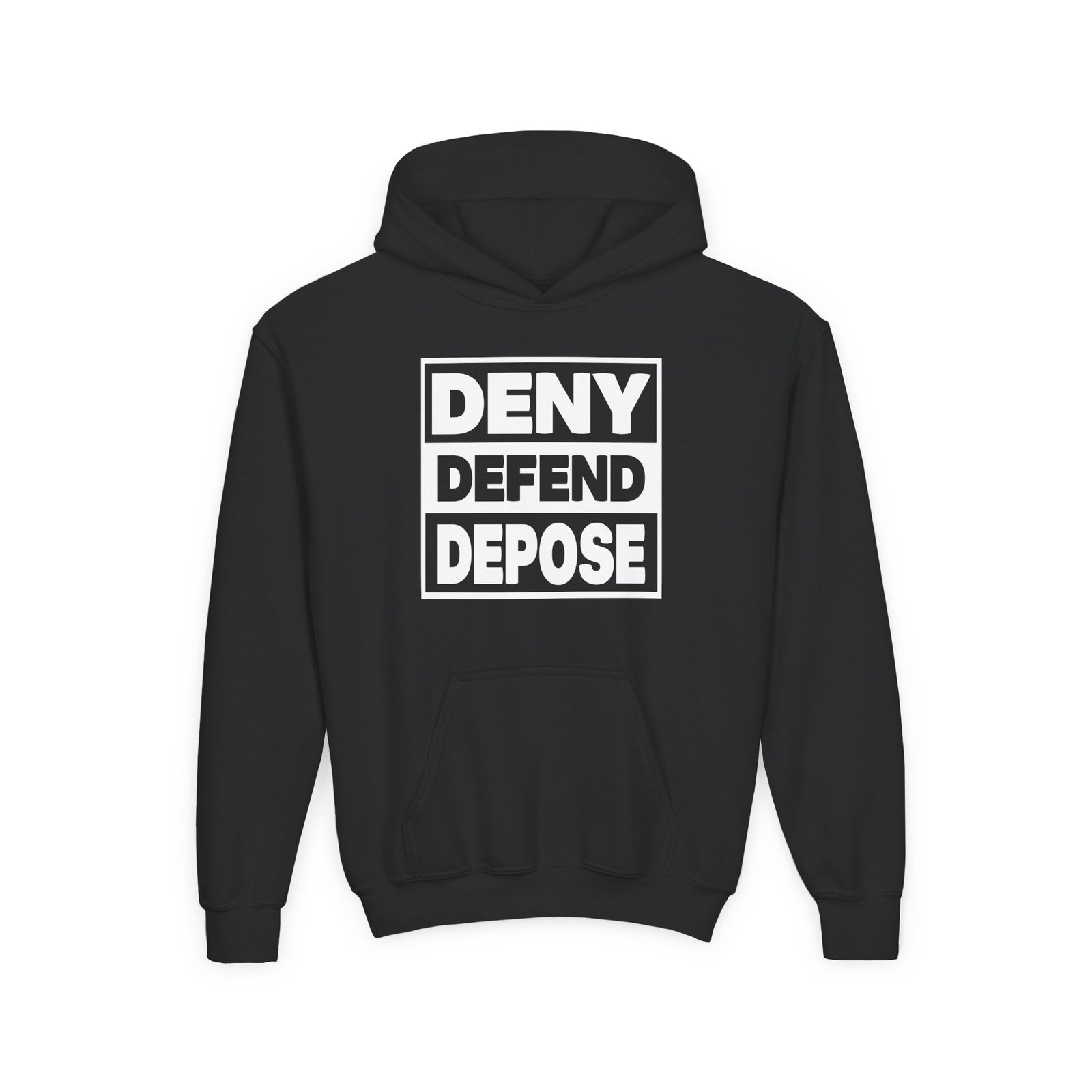 Soft, comfy, and a little bit mischievous — this youth Deny Defend Depose hoodie brings bright, playful energy to everyday wear. A drippy gradient smiley sits on the chest in neon orange-to-pink, framed by bold lettering that gives the design attitude without shouting. The midweight fabric holds its shape and keeps kids cozy through playground runs, chilly school mornings, and weekend hangouts. Thoughtful details like a roomy kangaroo pocket and twill neck tape make it durable and comfortable, while print and embroidery options let you add a custom touch. It’s the kind of hoodie that becomes a go-to for active days and casual adventures.