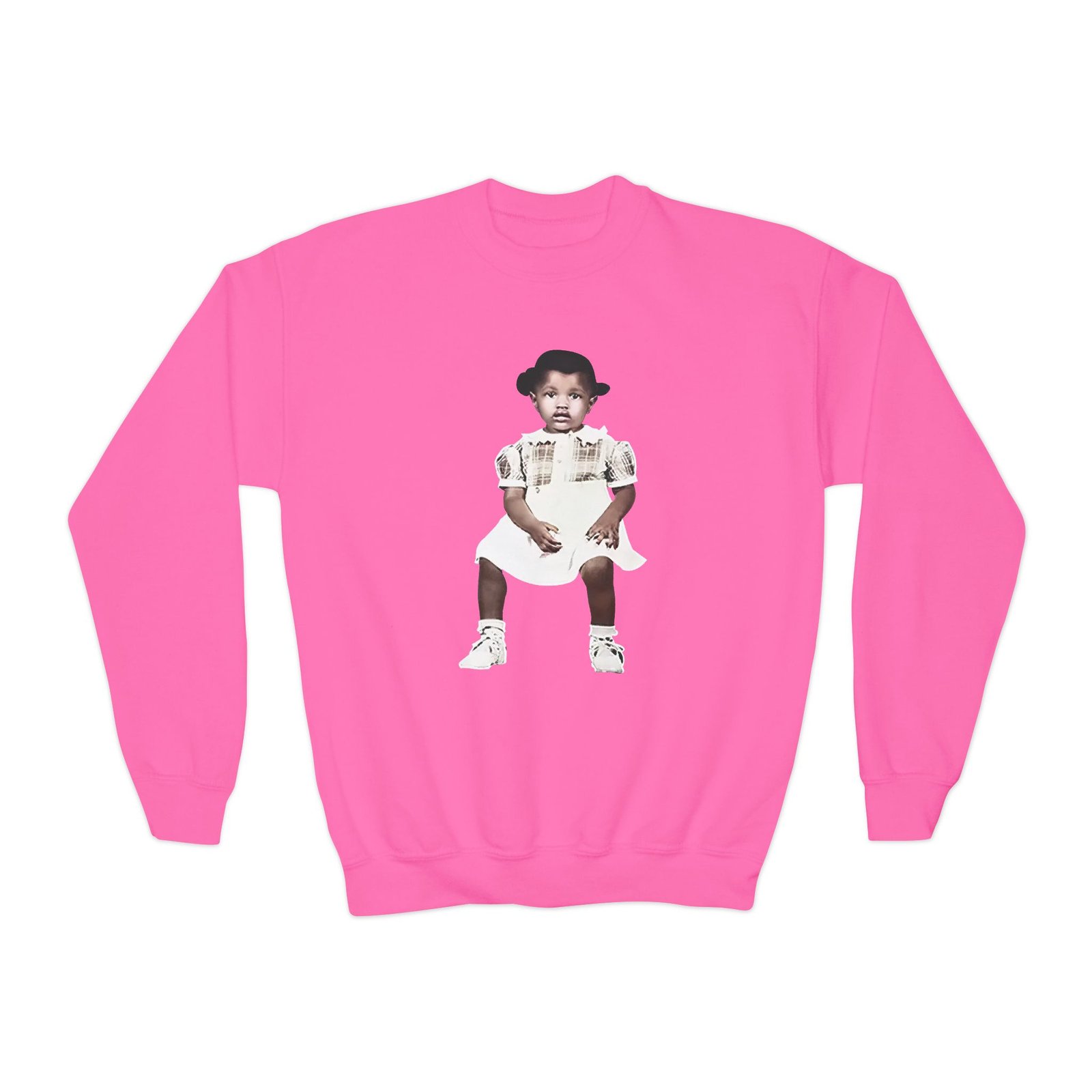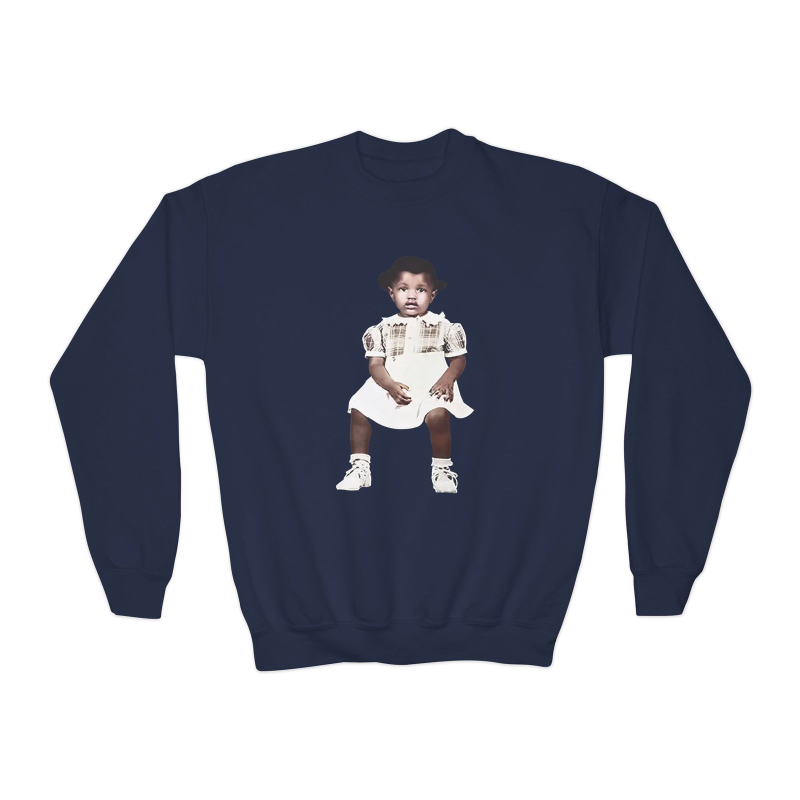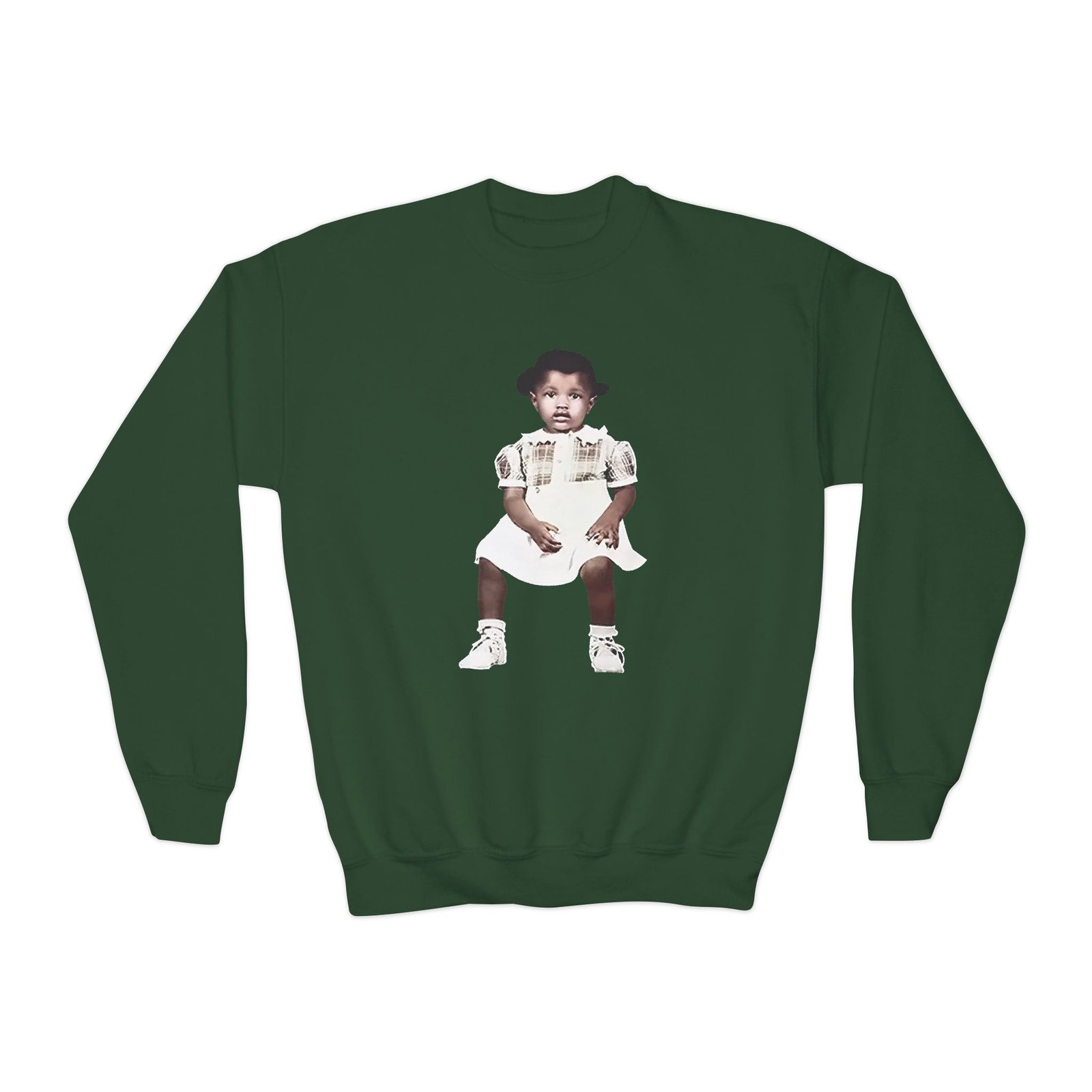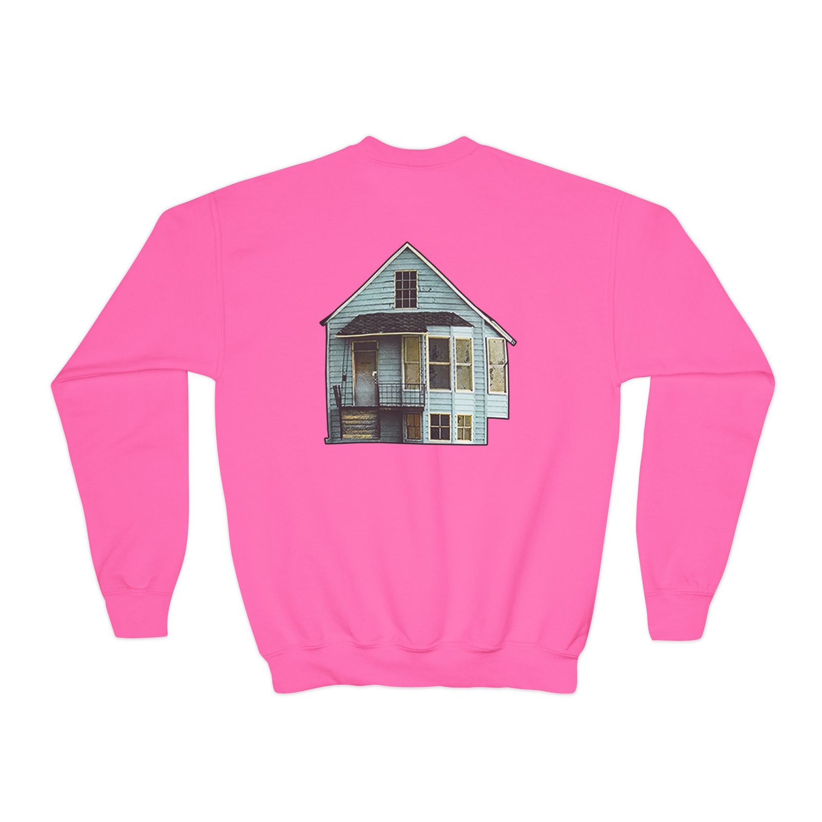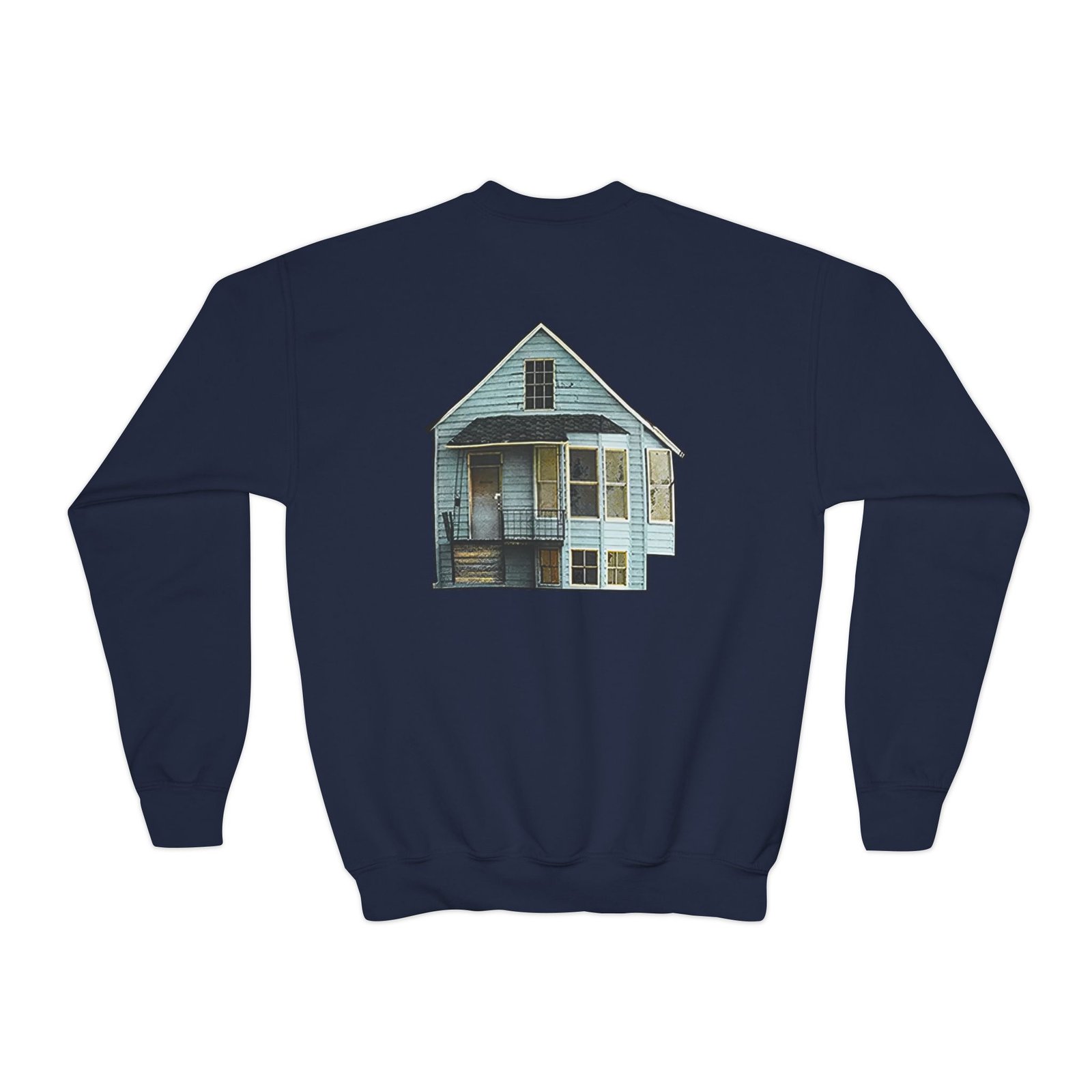 This loose-fit youth Donda crewneck brings moody, occult-inspired style to everyday wear. A storm-lit silhouette and grainy, moonlit scene sit beneath hand-lettered gothic text in bruised purple — a look that reads like a midnight zine spread. The sweatshirt’s medium-heavy knit feels substantial without weighing down small frames, and the ribbed collar and cuffs hold their shape through play and repeat washes. Let this crew be the quiet centerpiece of a darker wardrobe: layered over band tees, hoodies, or under a denim jacket for a city-night vibe that leans mysterious and made-for-exploring.