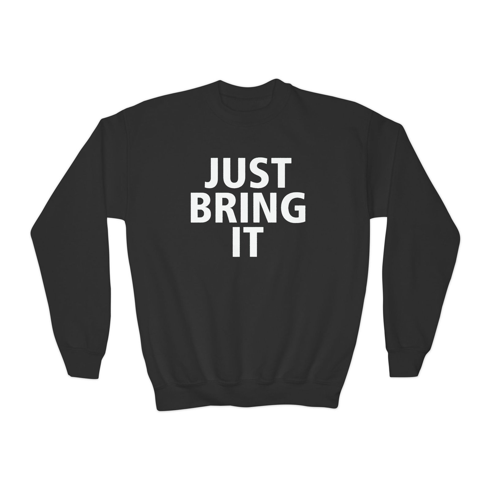 This loose-fit youth Dwayne Johnson Just Bring It! crewneck brings moody, occult-inspired style to everyday wear. A storm-lit silhouette and grainy, moonlit scene sit beneath hand-lettered gothic text in bruised purple — a look that reads like a midnight zine spread. The sweatshirt’s medium-heavy knit feels substantial without weighing down small frames, and the ribbed collar and cuffs hold their shape through play and repeat washes. Let this crew be the quiet centerpiece of a darker wardrobe: layered over band tees, hoodies, or under a denim jacket for a city-night vibe that leans mysterious and made-for-exploring.