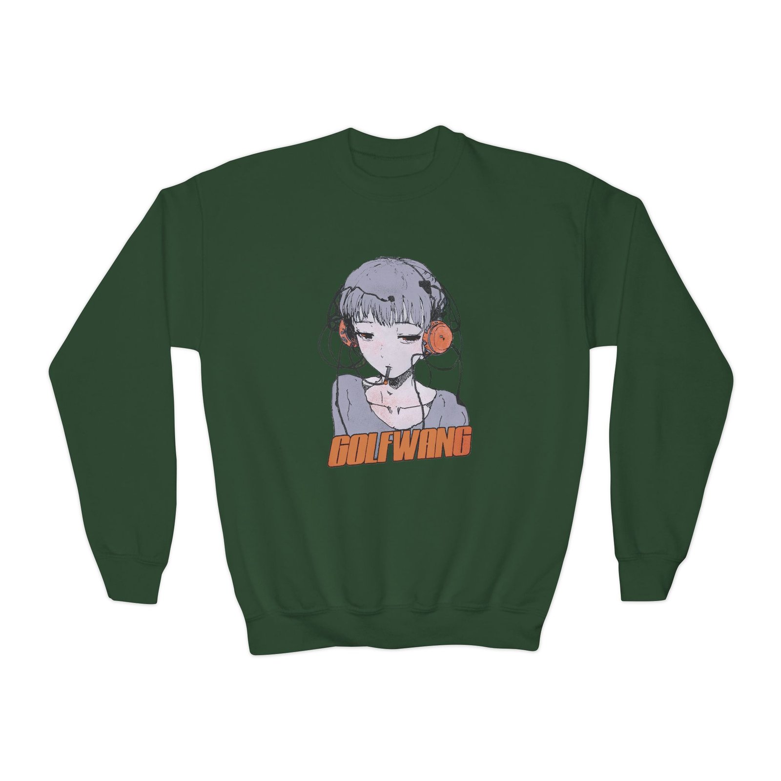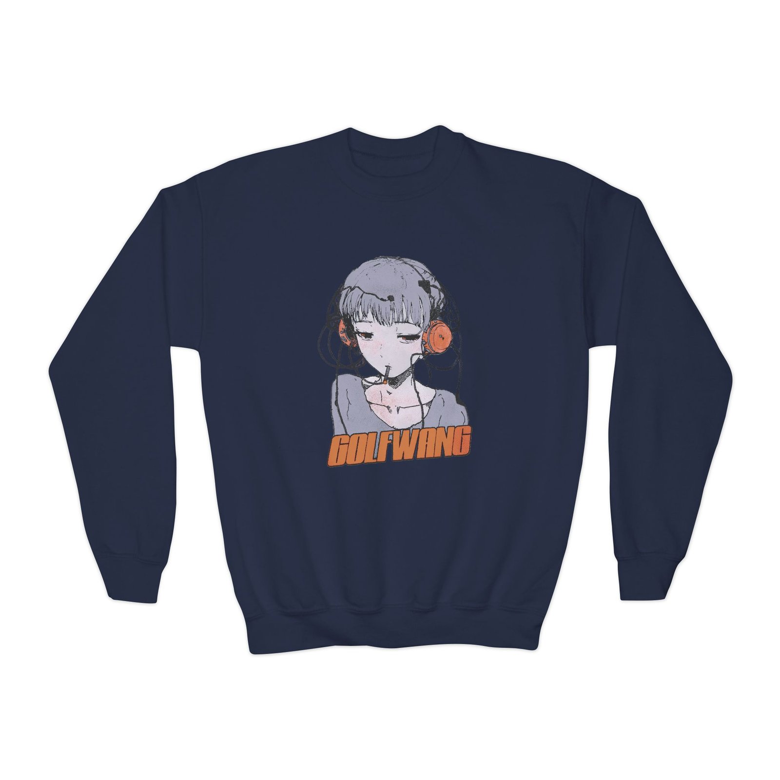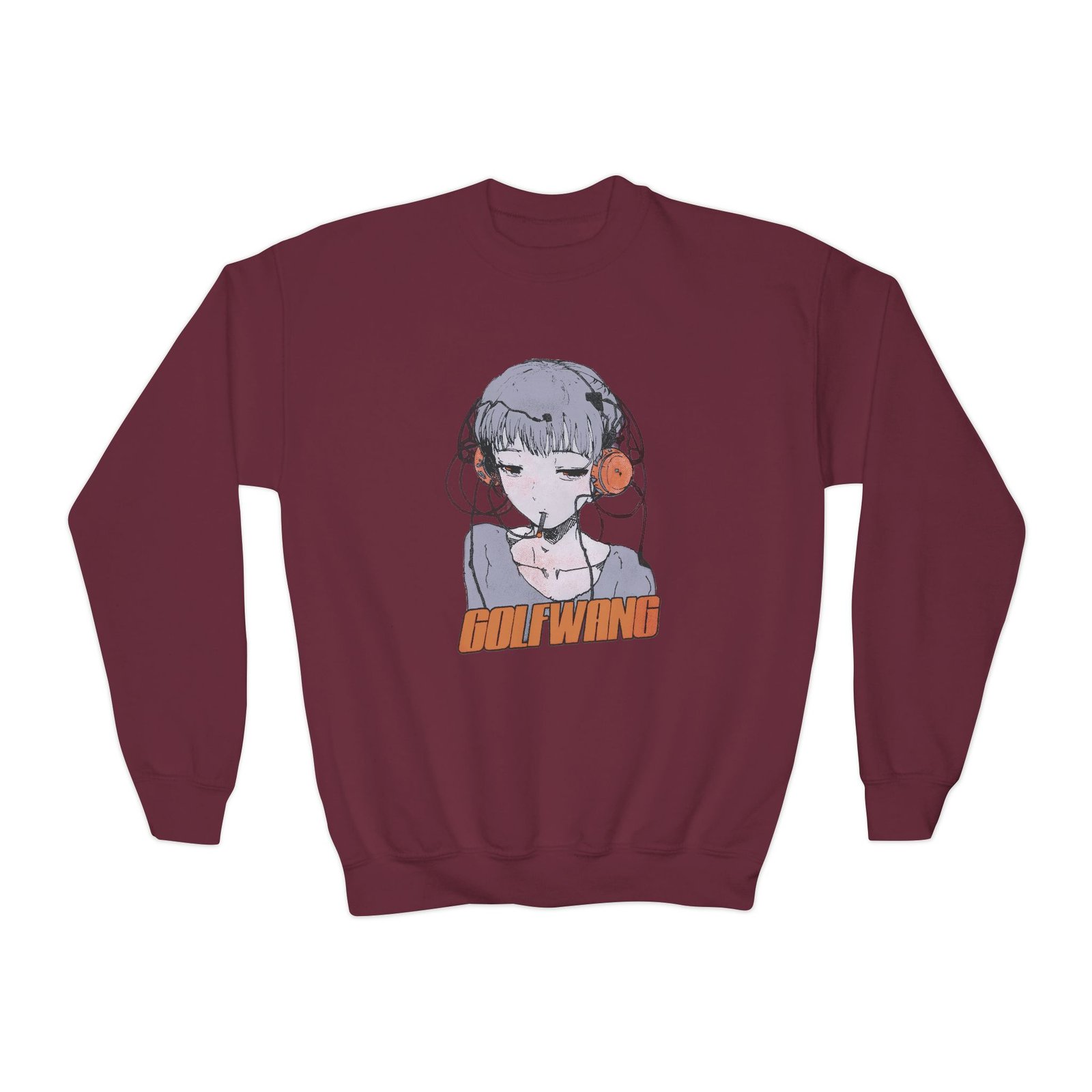 This loose-fit youth Golf Cigarette Candy crewneck brings moody, occult-inspired style to everyday wear. A storm-lit silhouette and grainy, moonlit scene sit beneath hand-lettered gothic text in bruised purple — a look that reads like a midnight zine spread. The sweatshirt’s medium-heavy knit feels substantial without weighing down small frames, and the ribbed collar and cuffs hold their shape through play and repeat washes. Let this crew be the quiet centerpiece of a darker wardrobe: layered over band tees, hoodies, or under a denim jacket for a city-night vibe that leans mysterious and made-for-exploring.