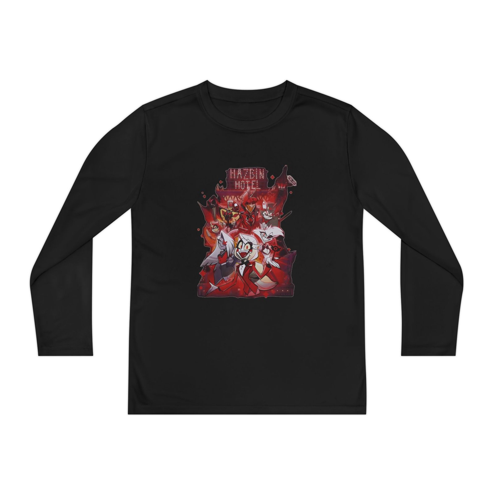 A lightweight Hazbin Hotel Characters long-sleeve designed for active kids who lean into darker, atmospheric style. The shirt’s smooth, moisture-wicking polyester keeps movement unhindered and dries fast after practice or a day outside. The front art drops into a stormy, grayscale scene crowned by a jagged flash of lightning and moody gothic lettering — a bold, quietly rebellious statement that pairs with skate nights, band practice, or just hanging with friends. The athletic cut skims the body for an energetic silhouette, while the tear-away label keeps comfort high. Warmth is balanced with breathability, so it layers easily under a jacket or wears solo on cooler evenings.