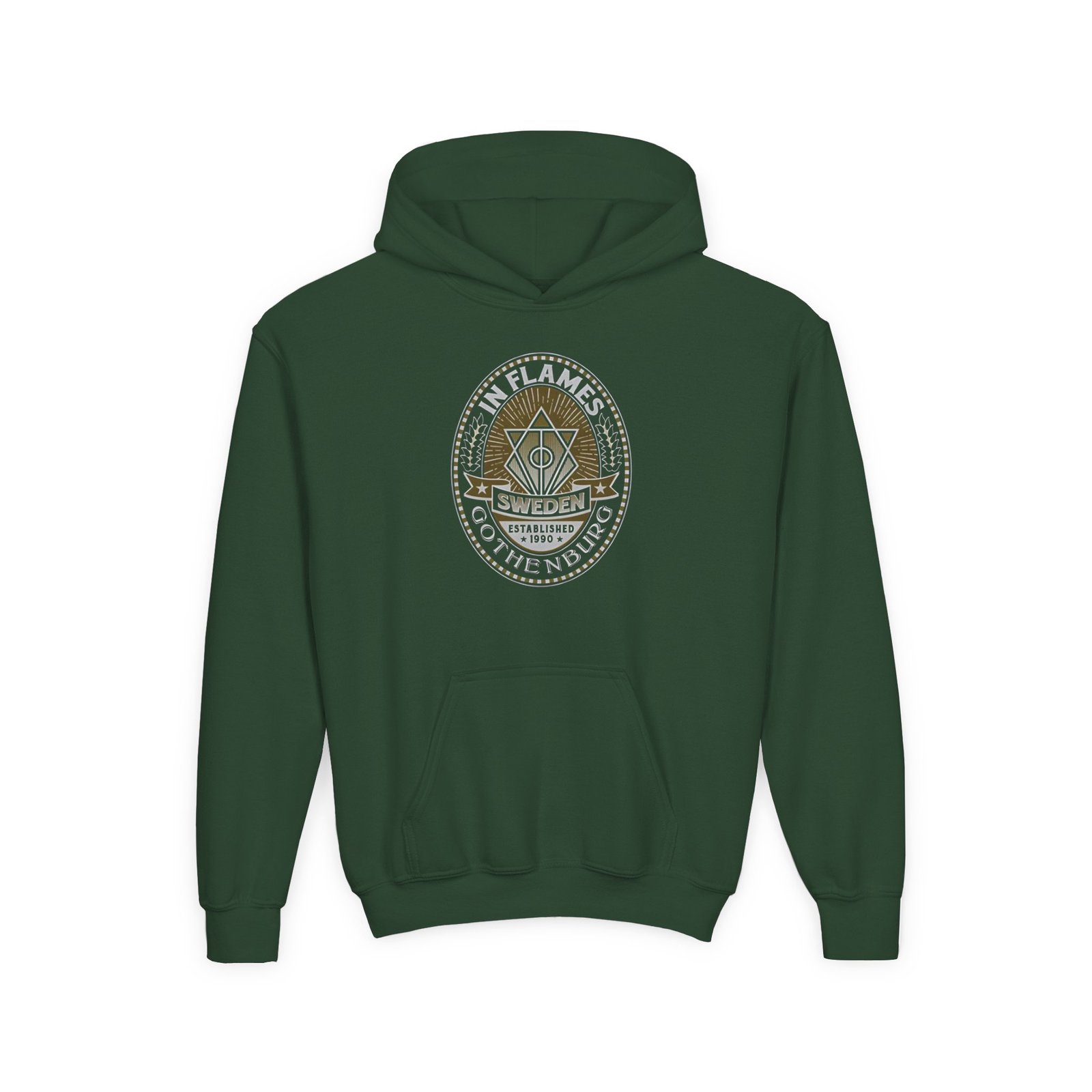 Soft, comfy, and a little bit mischievous — this youth In Flames Gothenburg Crest hoodie brings bright, playful energy to everyday wear. A drippy gradient smiley sits on the chest in neon orange-to-pink, framed by bold lettering that gives the design attitude without shouting. The midweight fabric holds its shape and keeps kids cozy through playground runs, chilly school mornings, and weekend hangouts. Thoughtful details like a roomy kangaroo pocket and twill neck tape make it durable and comfortable, while print and embroidery options let you add a custom touch. It’s the kind of hoodie that becomes a go-to for active days and casual adventures.