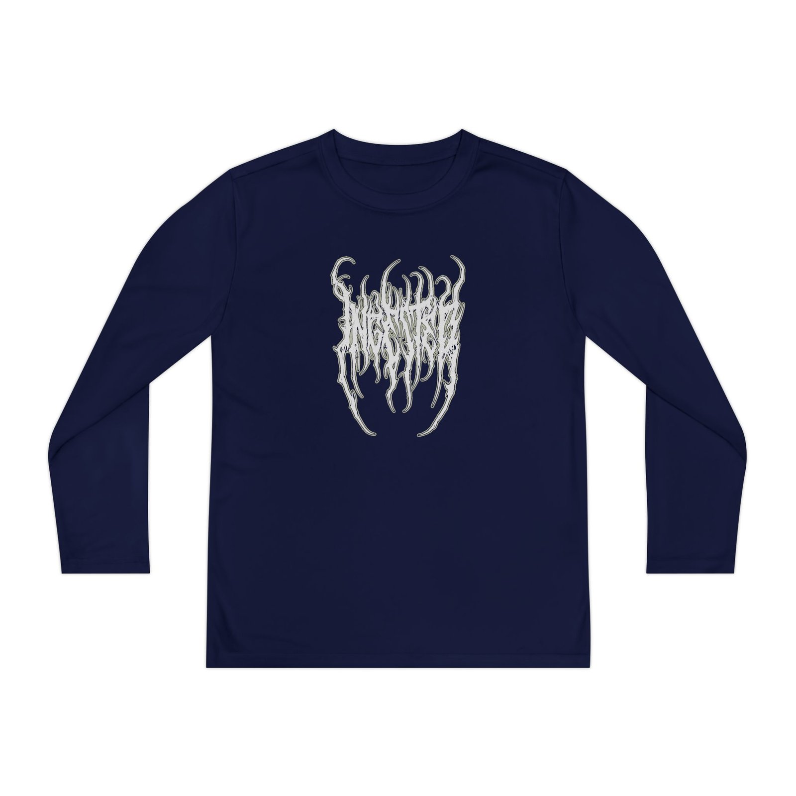 A lightweight Ingested Logo long-sleeve designed for active kids who lean into darker, atmospheric style. The shirt’s smooth, moisture-wicking polyester keeps movement unhindered and dries fast after practice or a day outside. The front art drops into a stormy, grayscale scene crowned by a jagged flash of lightning and moody gothic lettering — a bold, quietly rebellious statement that pairs with skate nights, band practice, or just hanging with friends. The athletic cut skims the body for an energetic silhouette, while the tear-away label keeps comfort high. Warmth is balanced with breathability, so it layers easily under a jacket or wears solo on cooler evenings.