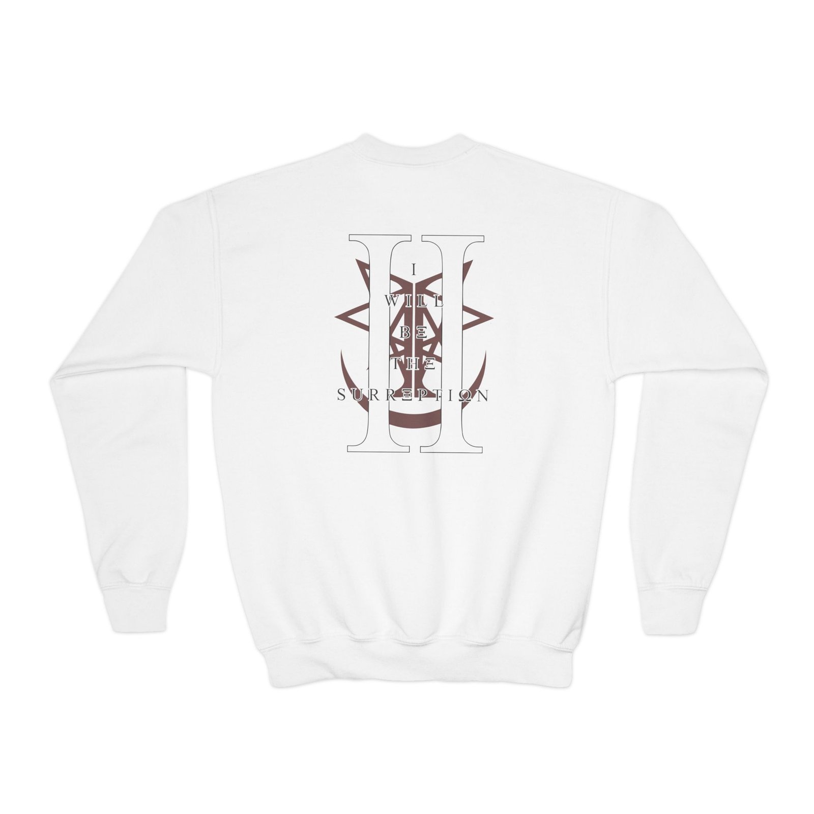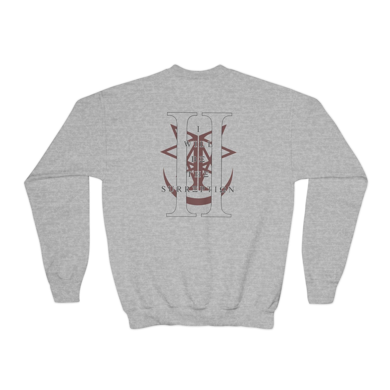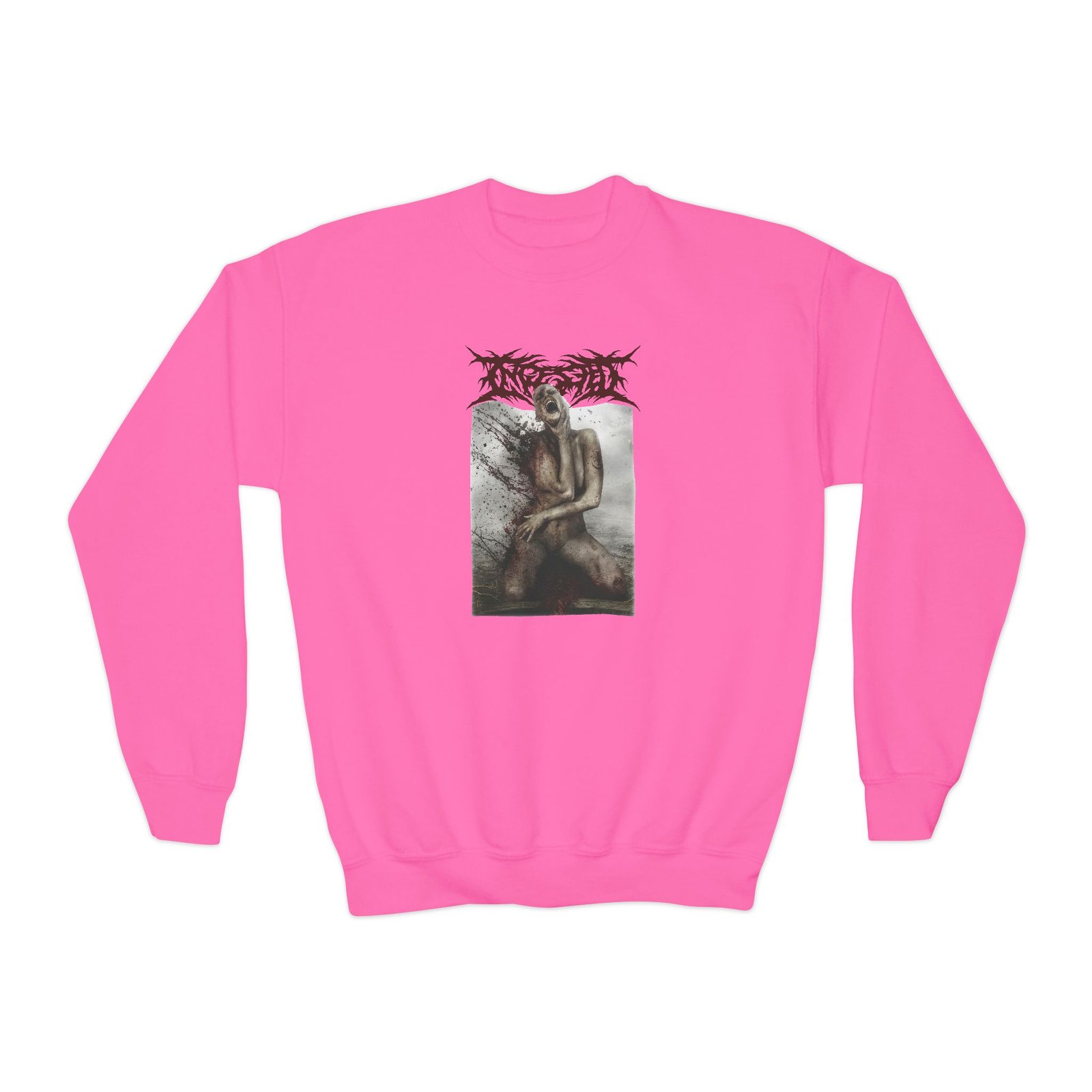 This loose-fit youth Ingested the Surreption Ii crewneck brings moody, occult-inspired style to everyday wear. A storm-lit silhouette and grainy, moonlit scene sit beneath hand-lettered gothic text in bruised purple — a look that reads like a midnight zine spread. The sweatshirt’s medium-heavy knit feels substantial without weighing down small frames, and the ribbed collar and cuffs hold their shape through play and repeat washes. Let this crew be the quiet centerpiece of a darker wardrobe: layered over band tees, hoodies, or under a denim jacket for a city-night vibe that leans mysterious and made-for-exploring.