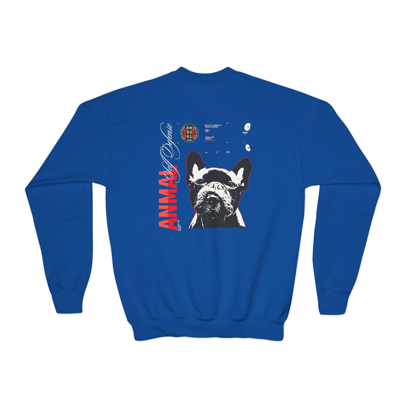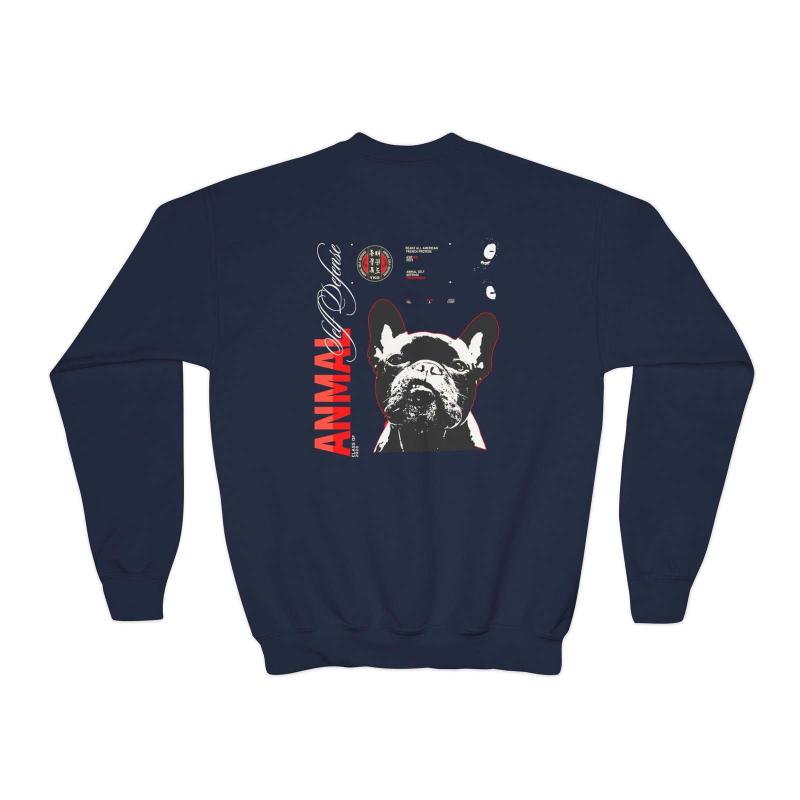 This loose-fit youth Jakerton Frenchie crewneck brings moody, occult-inspired style to everyday wear. A storm-lit silhouette and grainy, moonlit scene sit beneath hand-lettered gothic text in bruised purple — a look that reads like a midnight zine spread. The sweatshirt’s medium-heavy knit feels substantial without weighing down small frames, and the ribbed collar and cuffs hold their shape through play and repeat washes. Let this crew be the quiet centerpiece of a darker wardrobe: layered over band tees, hoodies, or under a denim jacket for a city-night vibe that leans mysterious and made-for-exploring.