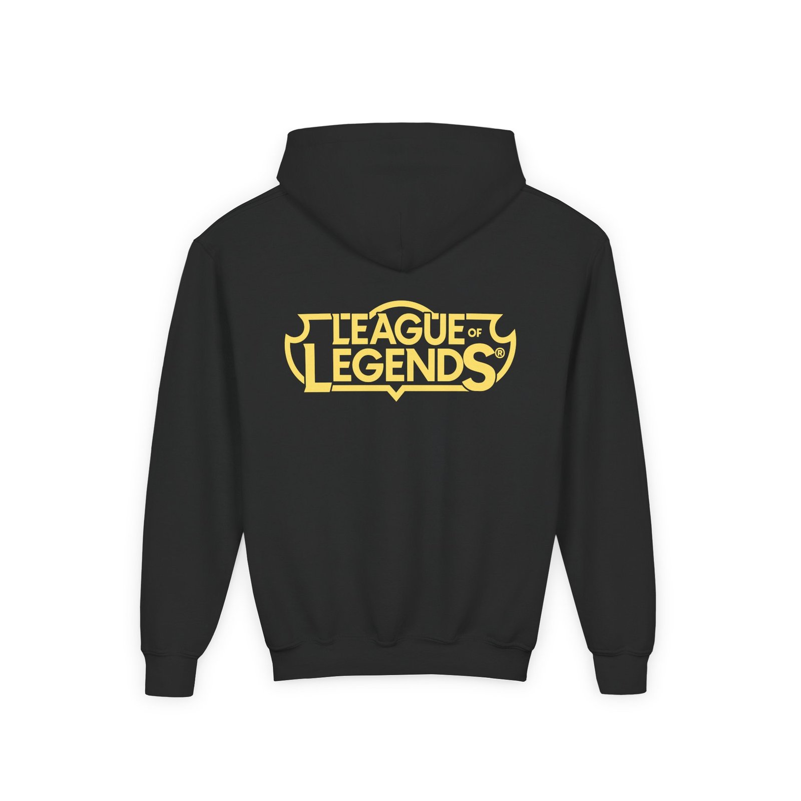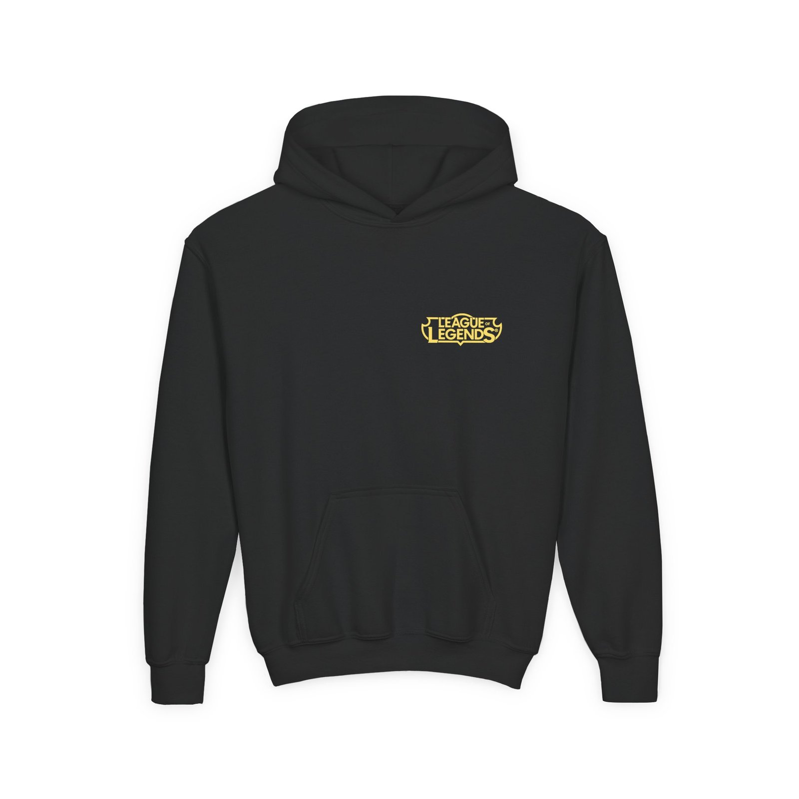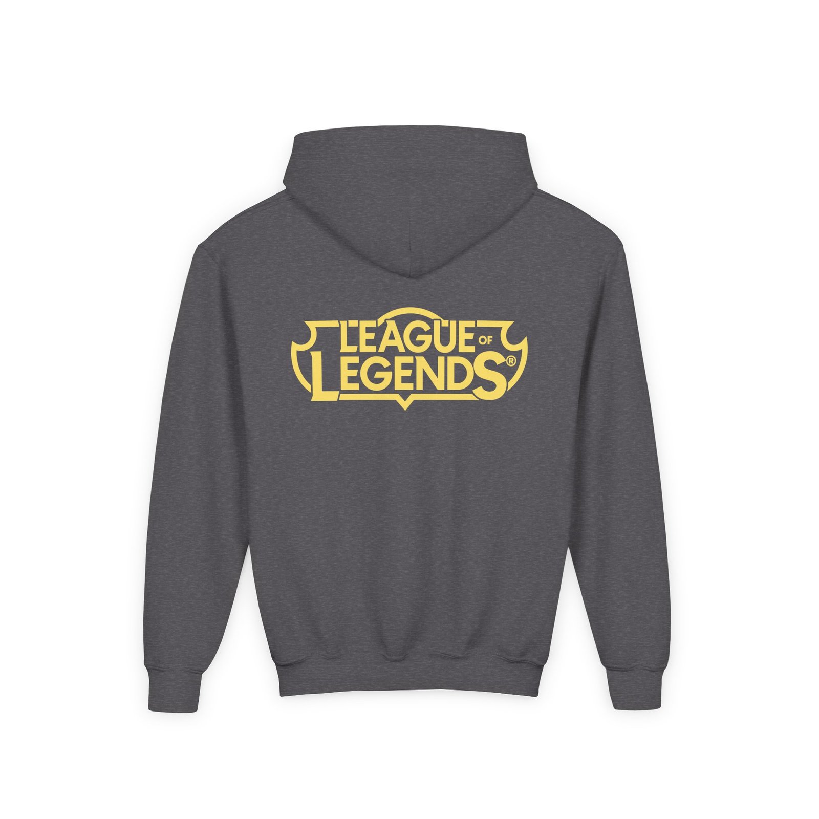 Soft, comfy, and a little bit mischievous — this youth League Of Legends hoodie brings bright, playful energy to everyday wear. A drippy gradient smiley sits on the chest in neon orange-to-pink, framed by bold lettering that gives the design attitude without shouting. The midweight fabric holds its shape and keeps kids cozy through playground runs, chilly school mornings, and weekend hangouts. Thoughtful details like a roomy kangaroo pocket and twill neck tape make it durable and comfortable, while print and embroidery options let you add a custom touch. It’s the kind of hoodie that becomes a go-to for active days and casual adventures.