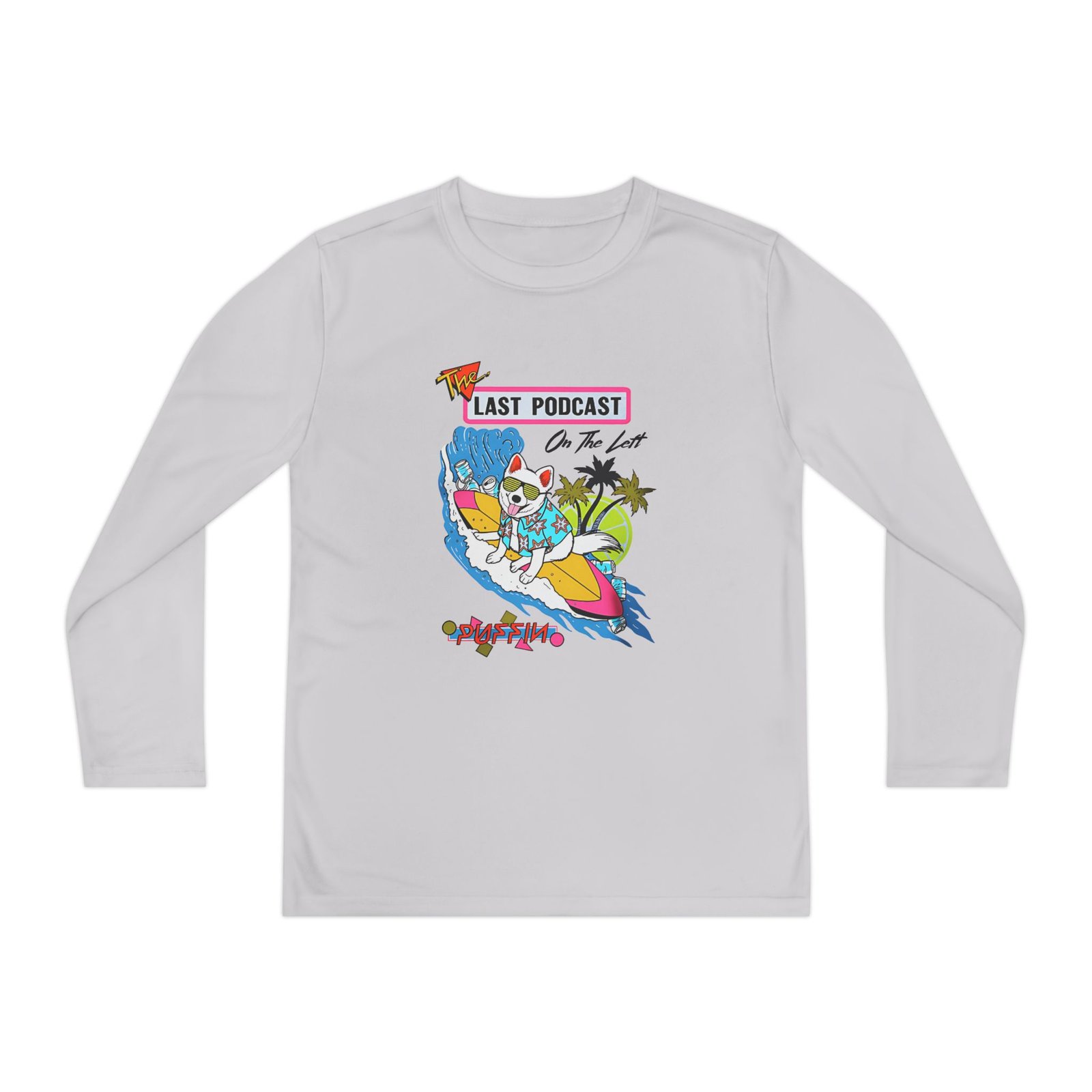 A lightweight LPOTL Puffin long-sleeve designed for active kids who lean into darker, atmospheric style. The shirt’s smooth, moisture-wicking polyester keeps movement unhindered and dries fast after practice or a day outside. The front art drops into a stormy, grayscale scene crowned by a jagged flash of lightning and moody gothic lettering — a bold, quietly rebellious statement that pairs with skate nights, band practice, or just hanging with friends. The athletic cut skims the body for an energetic silhouette, while the tear-away label keeps comfort high. Warmth is balanced with breathability, so it layers easily under a jacket or wears solo on cooler evenings.