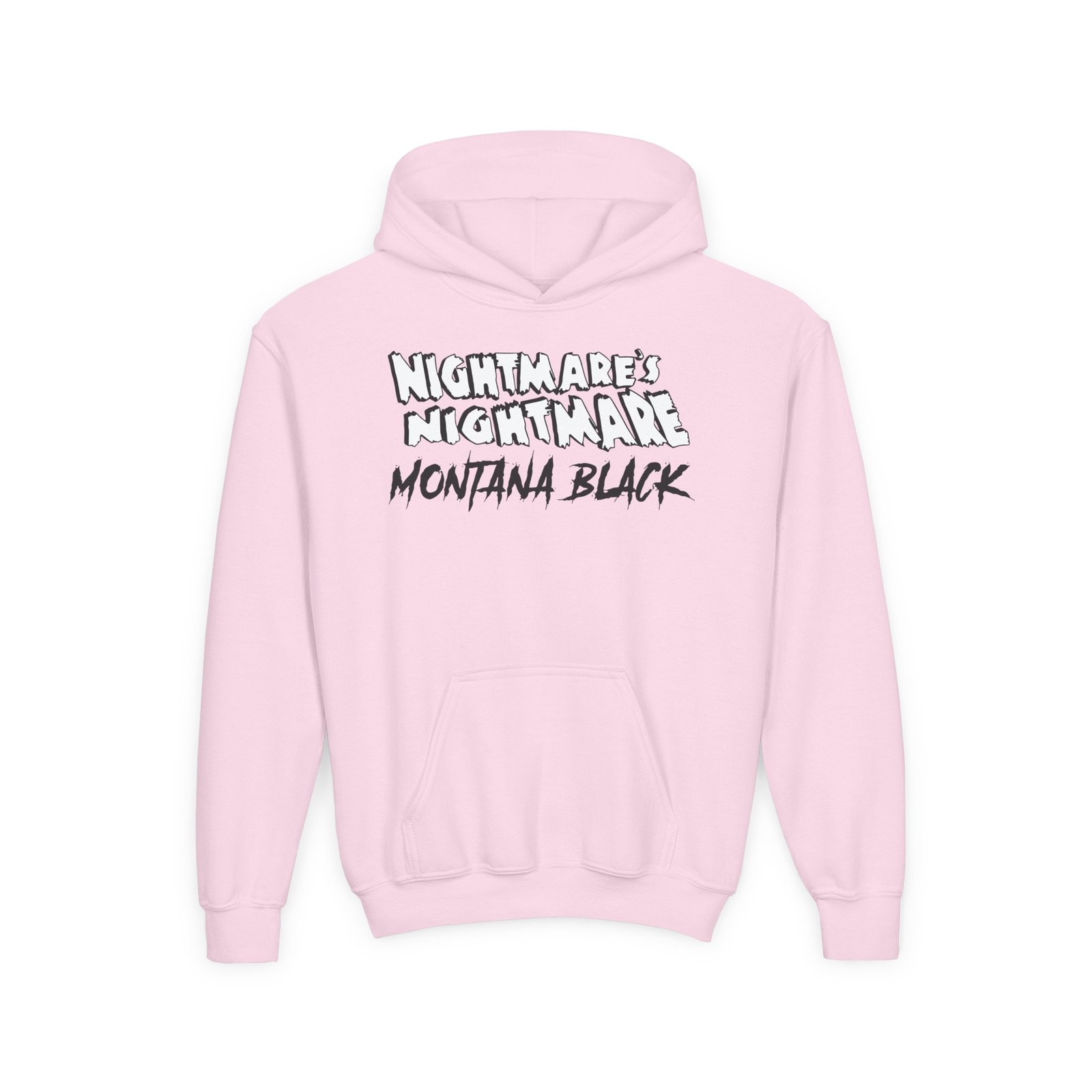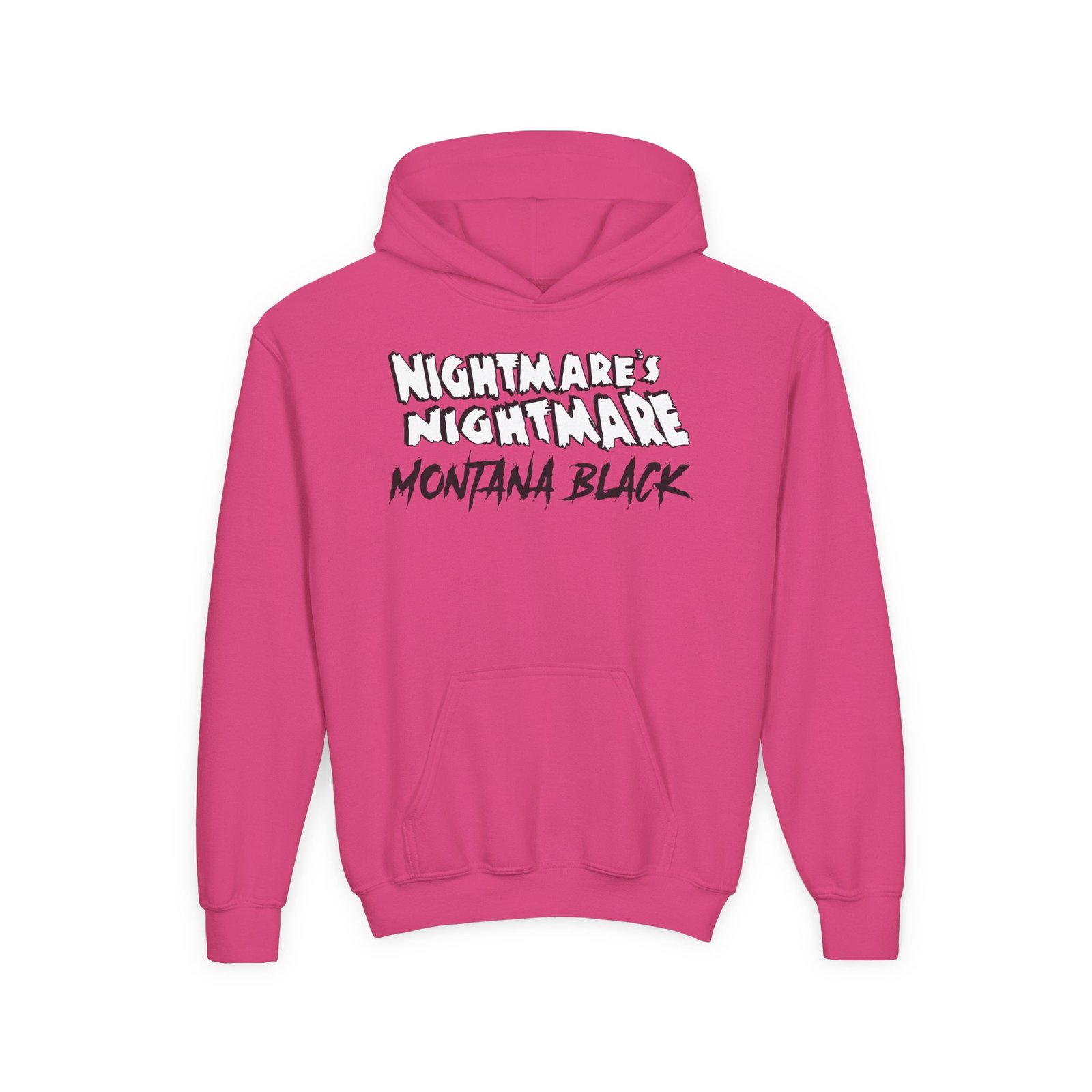 Soft, comfy, and a little bit mischievous — this youth Montana Black Nightmare's Nightmare Montana Black hoodie brings bright, playful energy to everyday wear. A drippy gradient smiley sits on the chest in neon orange-to-pink, framed by bold lettering that gives the design attitude without shouting. The midweight fabric holds its shape and keeps kids cozy through playground runs, chilly school mornings, and weekend hangouts. Thoughtful details like a roomy kangaroo pocket and twill neck tape make it durable and comfortable, while print and embroidery options let you add a custom touch. It’s the kind of hoodie that becomes a go-to for active days and casual adventures.
