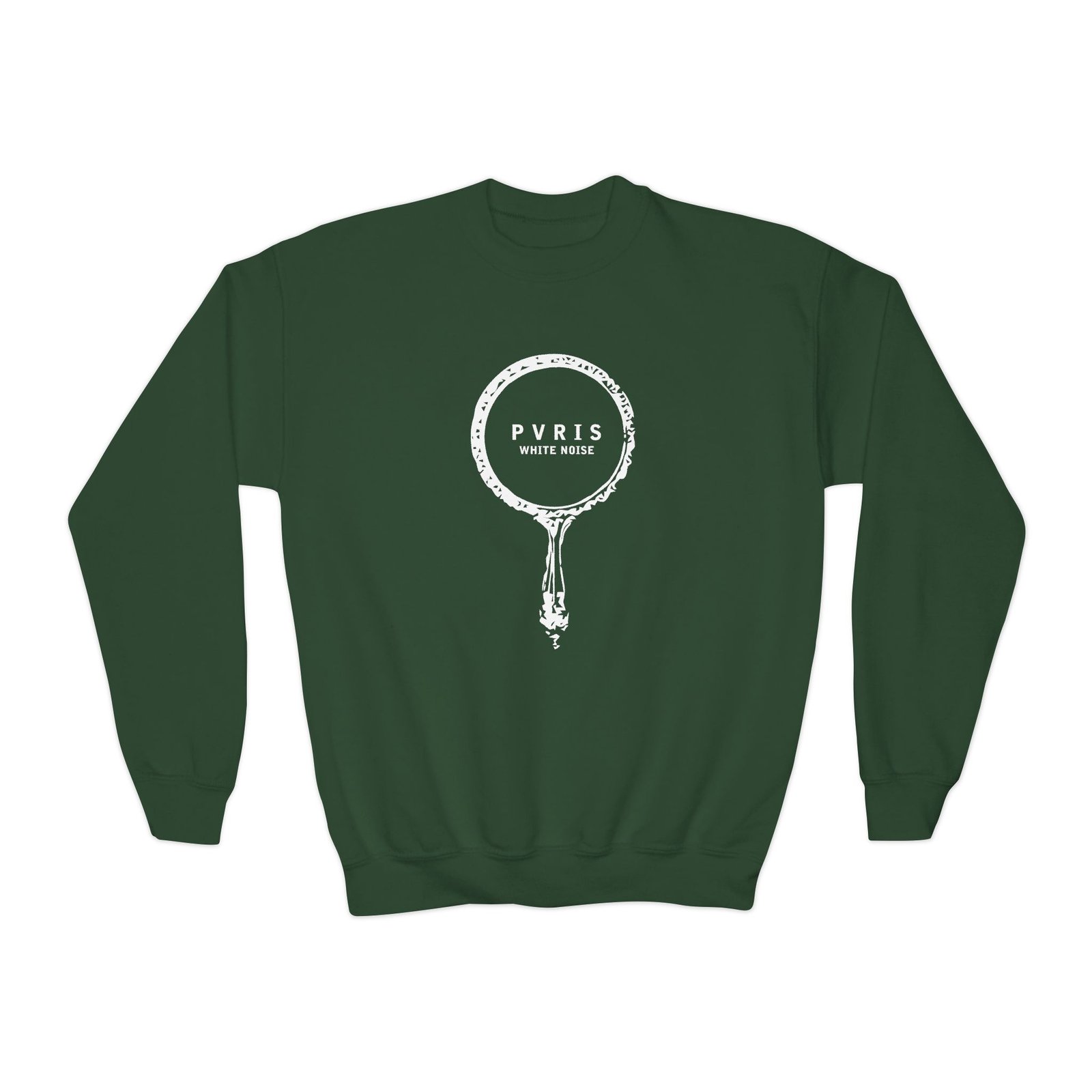 This loose-fit youth Pvris Mirror crewneck brings moody, occult-inspired style to everyday wear. A storm-lit silhouette and grainy, moonlit scene sit beneath hand-lettered gothic text in bruised purple — a look that reads like a midnight zine spread. The sweatshirt’s medium-heavy knit feels substantial without weighing down small frames, and the ribbed collar and cuffs hold their shape through play and repeat washes. Let this crew be the quiet centerpiece of a darker wardrobe: layered over band tees, hoodies, or under a denim jacket for a city-night vibe that leans mysterious and made-for-exploring.