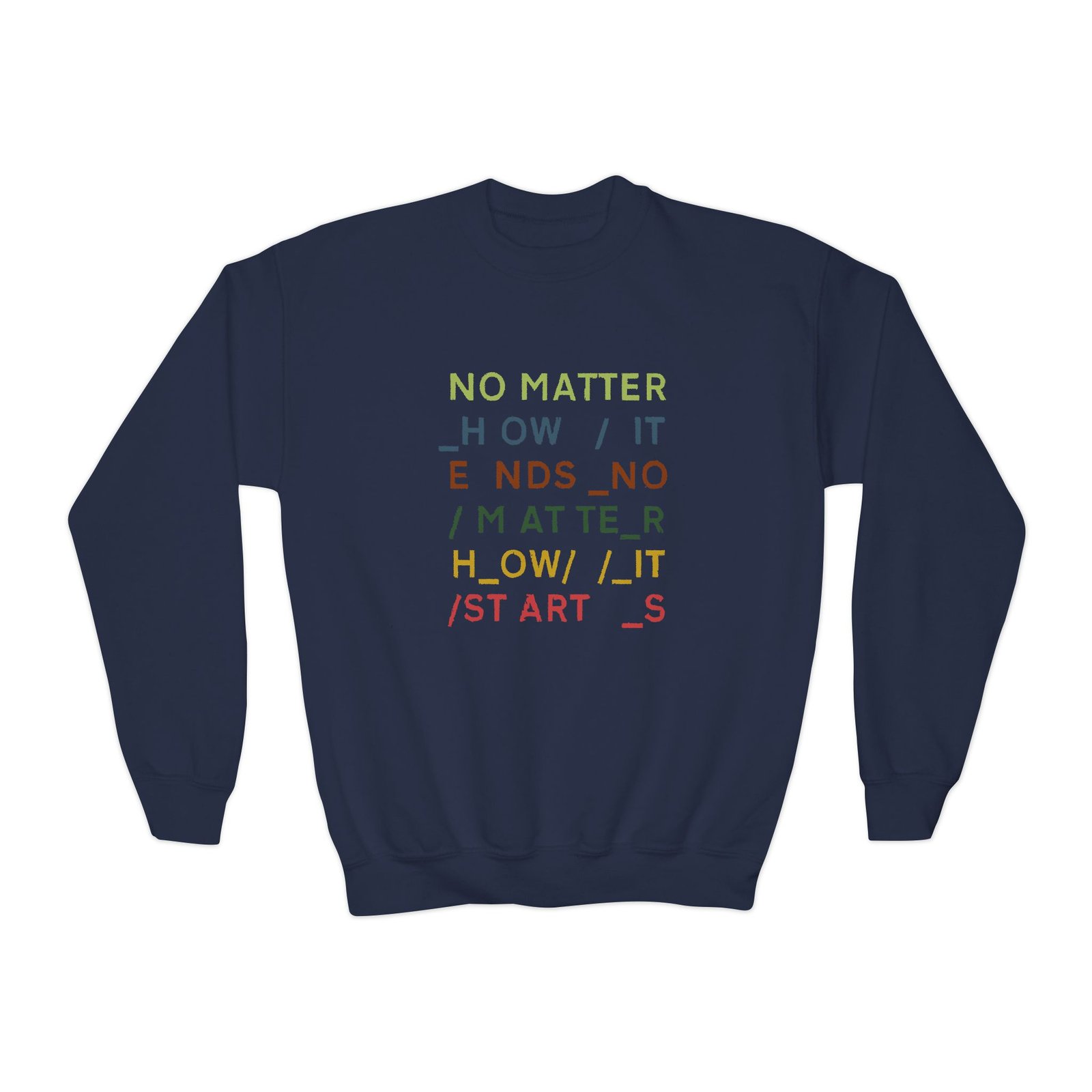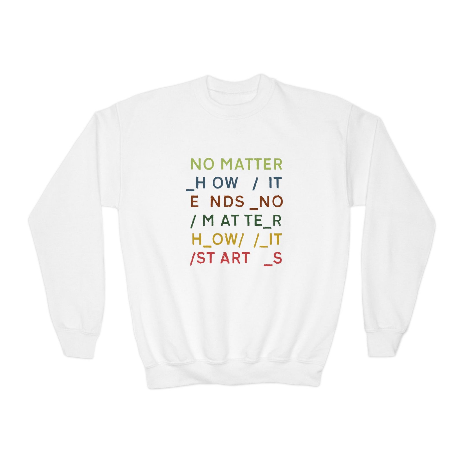 This loose-fit youth Radiohead No Matter crewneck brings moody, occult-inspired style to everyday wear. A storm-lit silhouette and grainy, moonlit scene sit beneath hand-lettered gothic text in bruised purple — a look that reads like a midnight zine spread. The sweatshirt’s medium-heavy knit feels substantial without weighing down small frames, and the ribbed collar and cuffs hold their shape through play and repeat washes. Let this crew be the quiet centerpiece of a darker wardrobe: layered over band tees, hoodies, or under a denim jacket for a city-night vibe that leans mysterious and made-for-exploring.