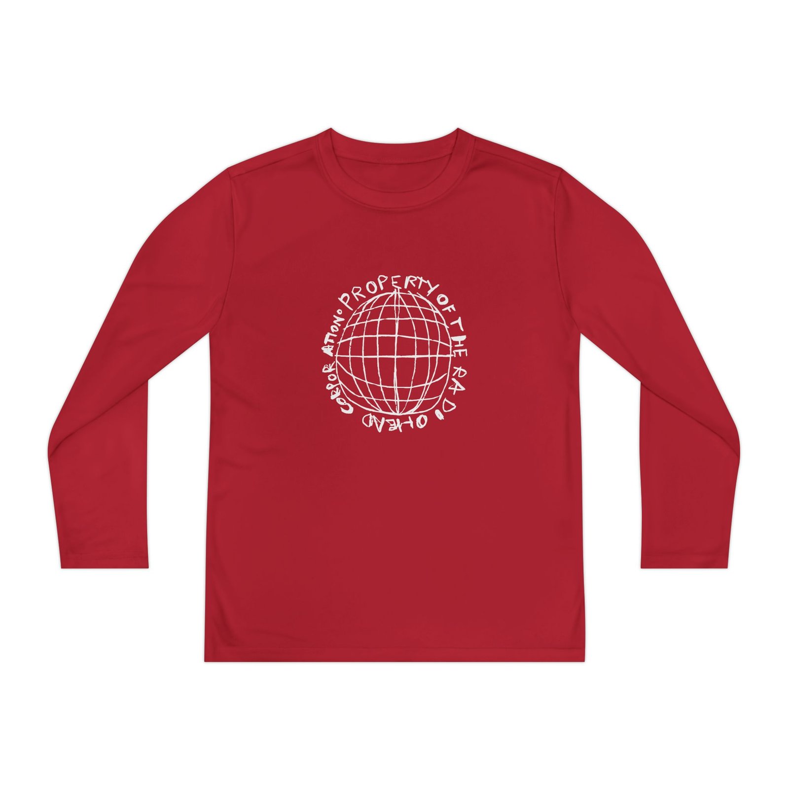 A lightweight Radiohead Property of long-sleeve designed for active kids who lean into darker, atmospheric style. The shirt’s smooth, moisture-wicking polyester keeps movement unhindered and dries fast after practice or a day outside. The front art drops into a stormy, grayscale scene crowned by a jagged flash of lightning and moody gothic lettering — a bold, quietly rebellious statement that pairs with skate nights, band practice, or just hanging with friends. The athletic cut skims the body for an energetic silhouette, while the tear-away label keeps comfort high. Warmth is balanced with breathability, so it layers easily under a jacket or wears solo on cooler evenings.