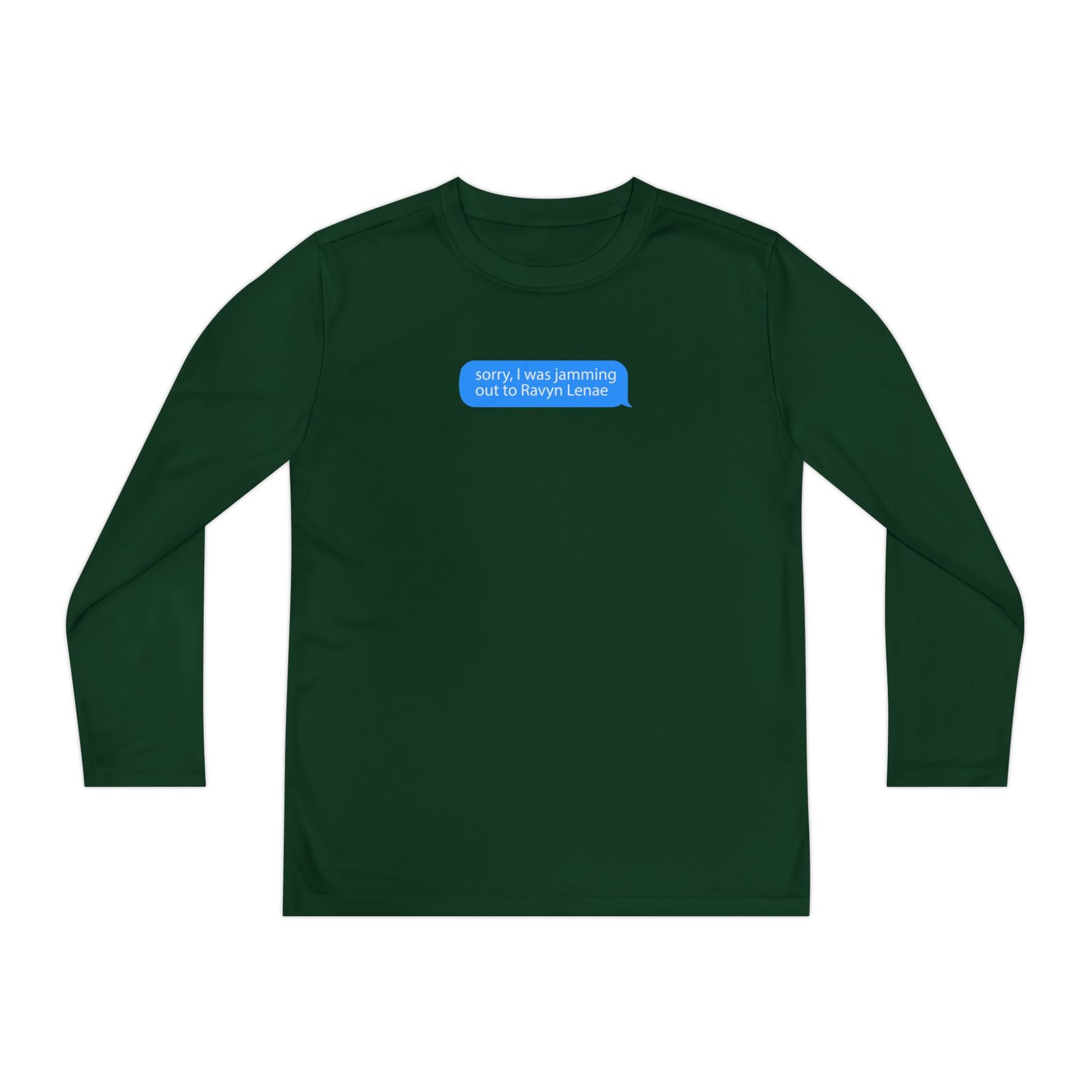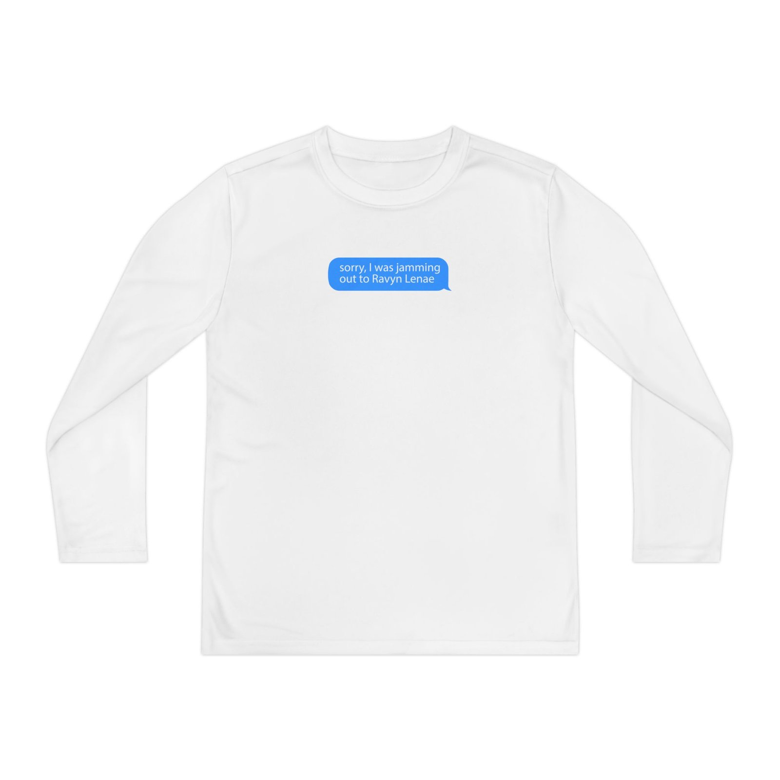 A lightweight Ravyn Lenae long-sleeve designed for active kids who lean into darker, atmospheric style. The shirt’s smooth, moisture-wicking polyester keeps movement unhindered and dries fast after practice or a day outside. The front art drops into a stormy, grayscale scene crowned by a jagged flash of lightning and moody gothic lettering — a bold, quietly rebellious statement that pairs with skate nights, band practice, or just hanging with friends. The athletic cut skims the body for an energetic silhouette, while the tear-away label keeps comfort high. Warmth is balanced with breathability, so it layers easily under a jacket or wears solo on cooler evenings.