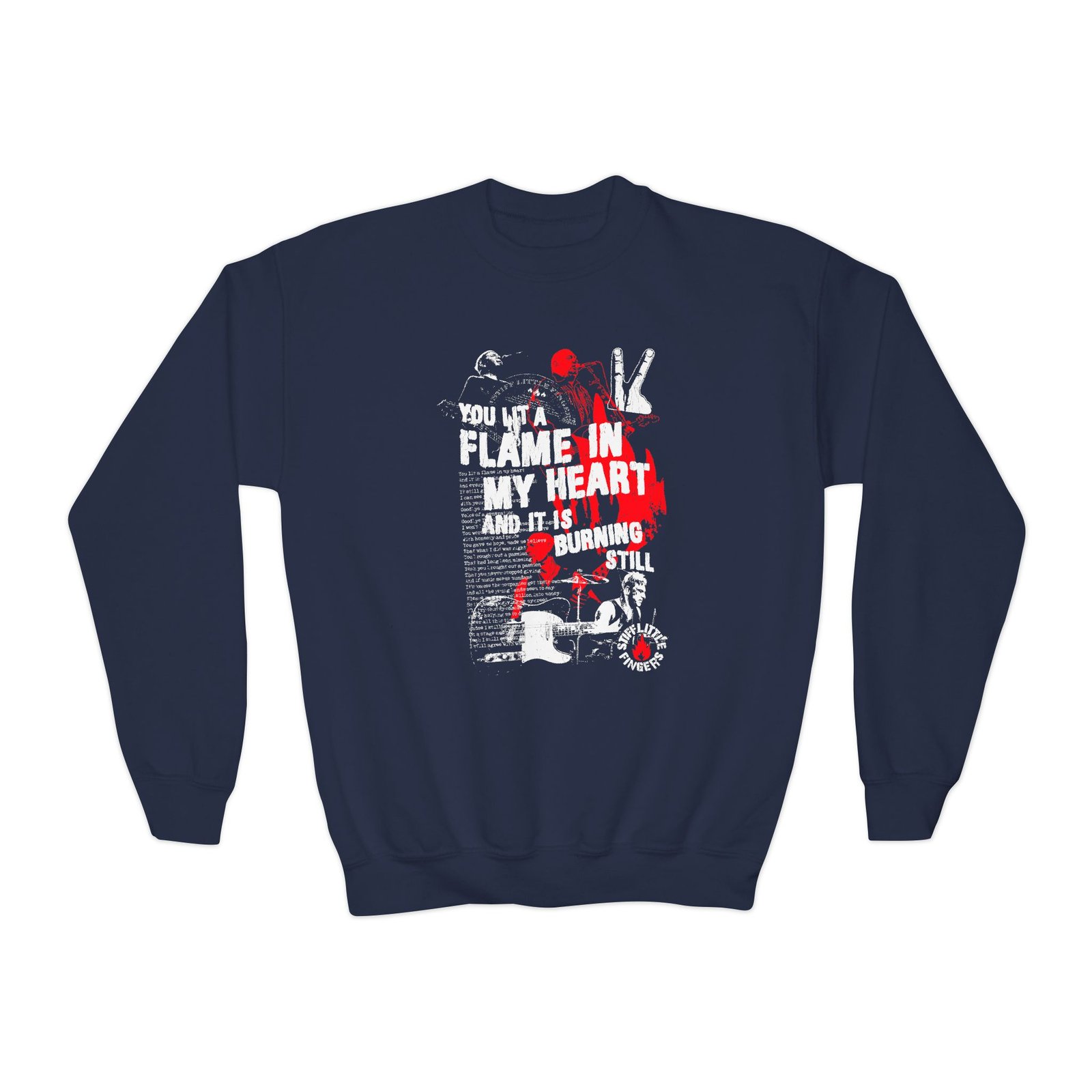 This loose-fit youth Stiff Little Fingers Strummerville crewneck brings moody, occult-inspired style to everyday wear. A storm-lit silhouette and grainy, moonlit scene sit beneath hand-lettered gothic text in bruised purple — a look that reads like a midnight zine spread. The sweatshirt’s medium-heavy knit feels substantial without weighing down small frames, and the ribbed collar and cuffs hold their shape through play and repeat washes. Let this crew be the quiet centerpiece of a darker wardrobe: layered over band tees, hoodies, or under a denim jacket for a city-night vibe that leans mysterious and made-for-exploring.