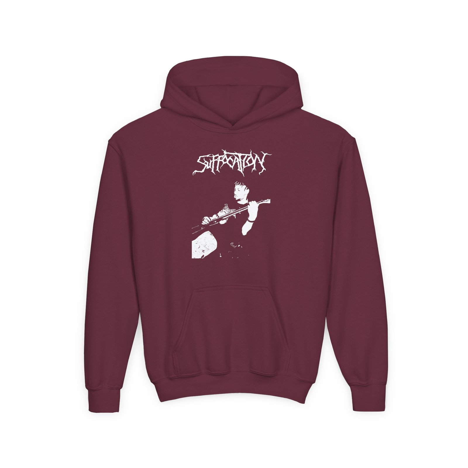 Soft, comfy, and a little bit mischievous — this youth Suffocation Hobbs Slam hoodie brings bright, playful energy to everyday wear. A drippy gradient smiley sits on the chest in neon orange-to-pink, framed by bold lettering that gives the design attitude without shouting. The midweight fabric holds its shape and keeps kids cozy through playground runs, chilly school mornings, and weekend hangouts. Thoughtful details like a roomy kangaroo pocket and twill neck tape make it durable and comfortable, while print and embroidery options let you add a custom touch. It’s the kind of hoodie that becomes a go-to for active days and casual adventures.