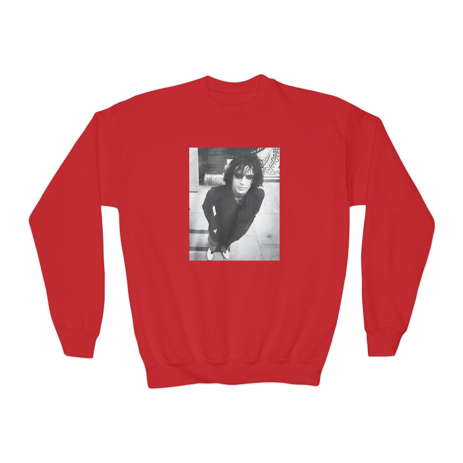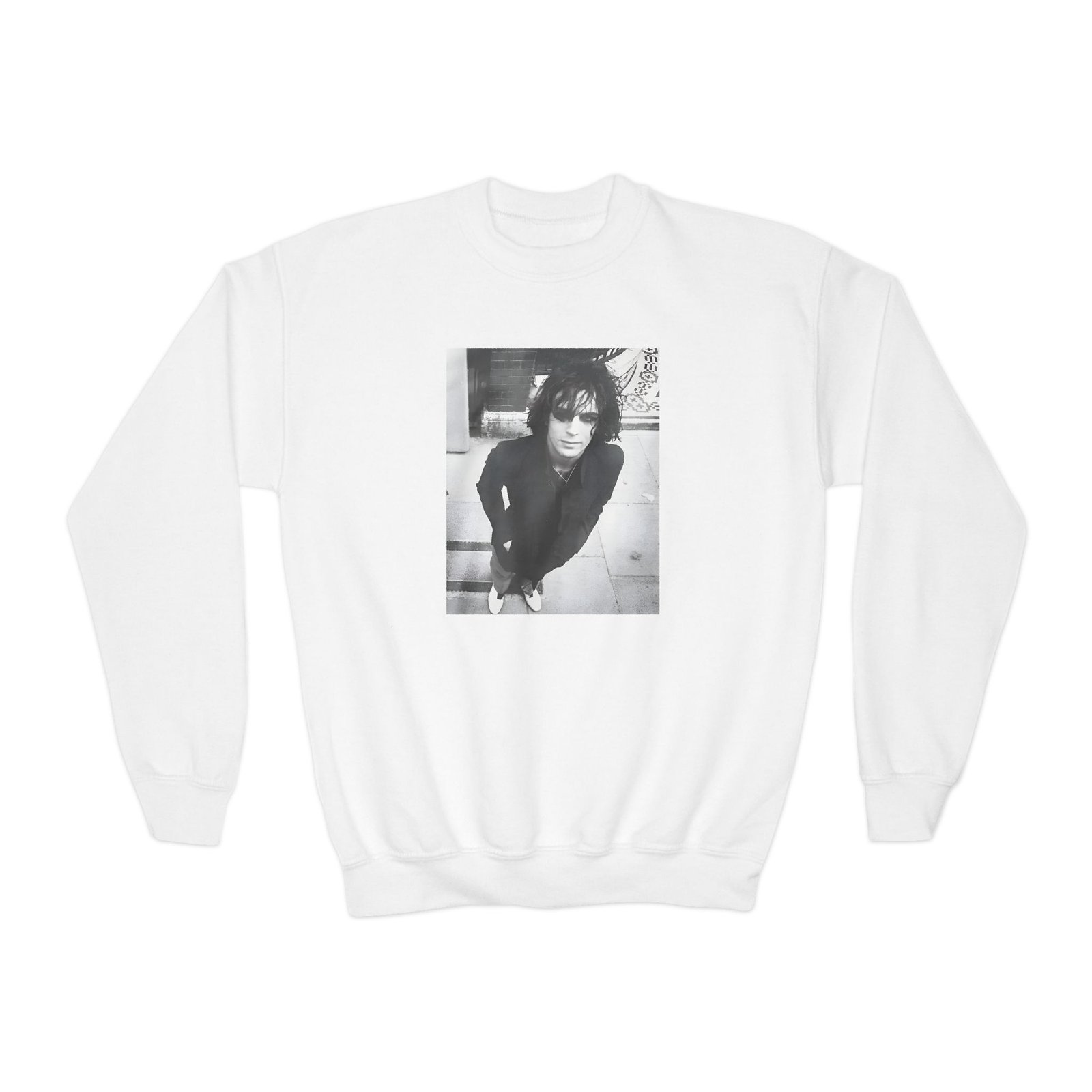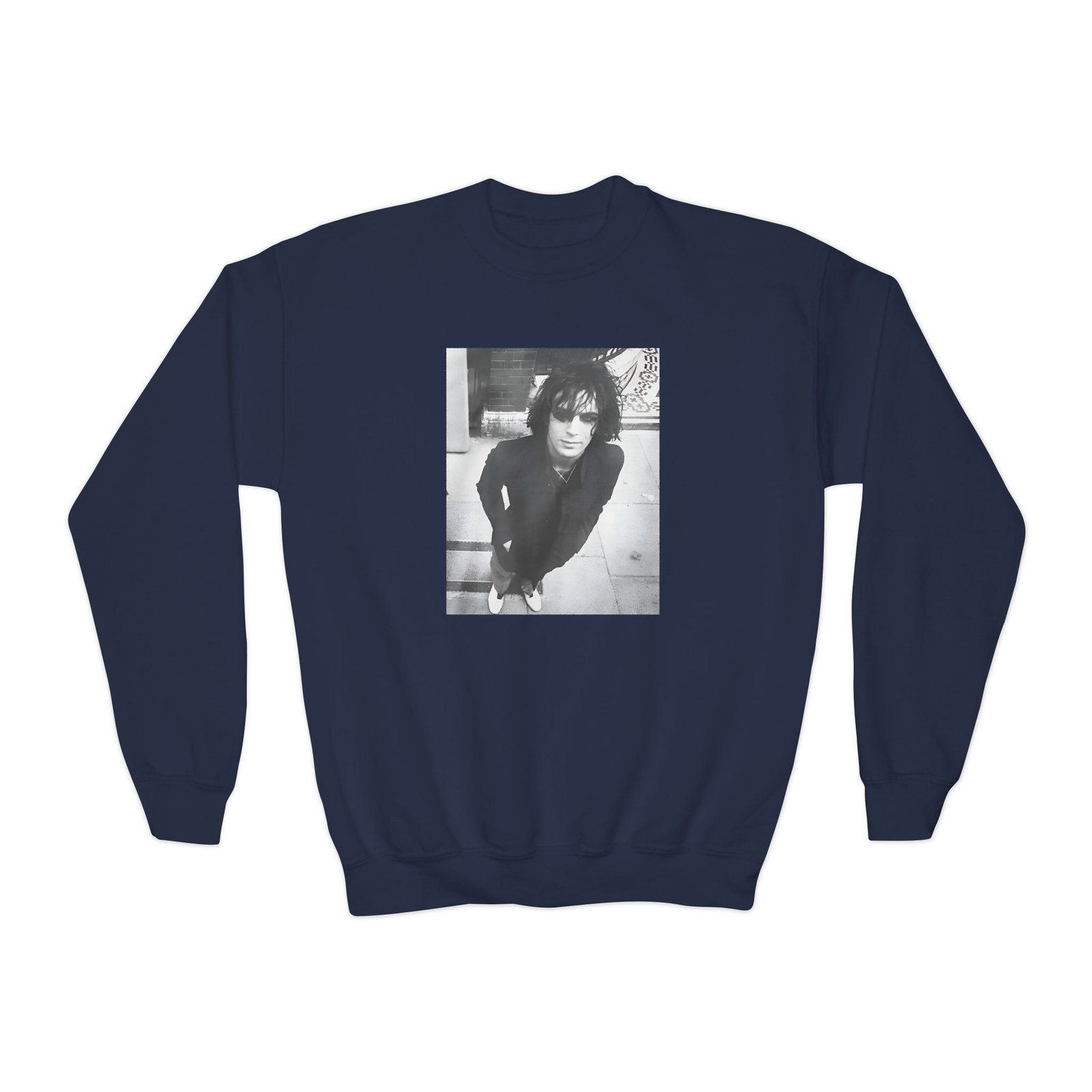 This loose-fit youth Syd Barrett Personality Portrait crewneck brings moody, occult-inspired style to everyday wear. A storm-lit silhouette and grainy, moonlit scene sit beneath hand-lettered gothic text in bruised purple — a look that reads like a midnight zine spread. The sweatshirt’s medium-heavy knit feels substantial without weighing down small frames, and the ribbed collar and cuffs hold their shape through play and repeat washes. Let this crew be the quiet centerpiece of a darker wardrobe: layered over band tees, hoodies, or under a denim jacket for a city-night vibe that leans mysterious and made-for-exploring.