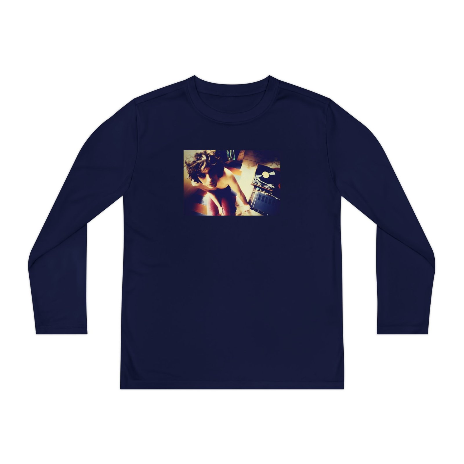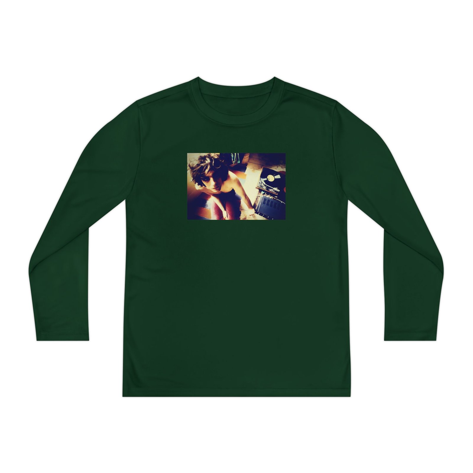 A lightweight Syd Barrett Spinning Stare long-sleeve designed for active kids who lean into darker, atmospheric style. The shirt’s smooth, moisture-wicking polyester keeps movement unhindered and dries fast after practice or a day outside. The front art drops into a stormy, grayscale scene crowned by a jagged flash of lightning and moody gothic lettering — a bold, quietly rebellious statement that pairs with skate nights, band practice, or just hanging with friends. The athletic cut skims the body for an energetic silhouette, while the tear-away label keeps comfort high. Warmth is balanced with breathability, so it layers easily under a jacket or wears solo on cooler evenings.