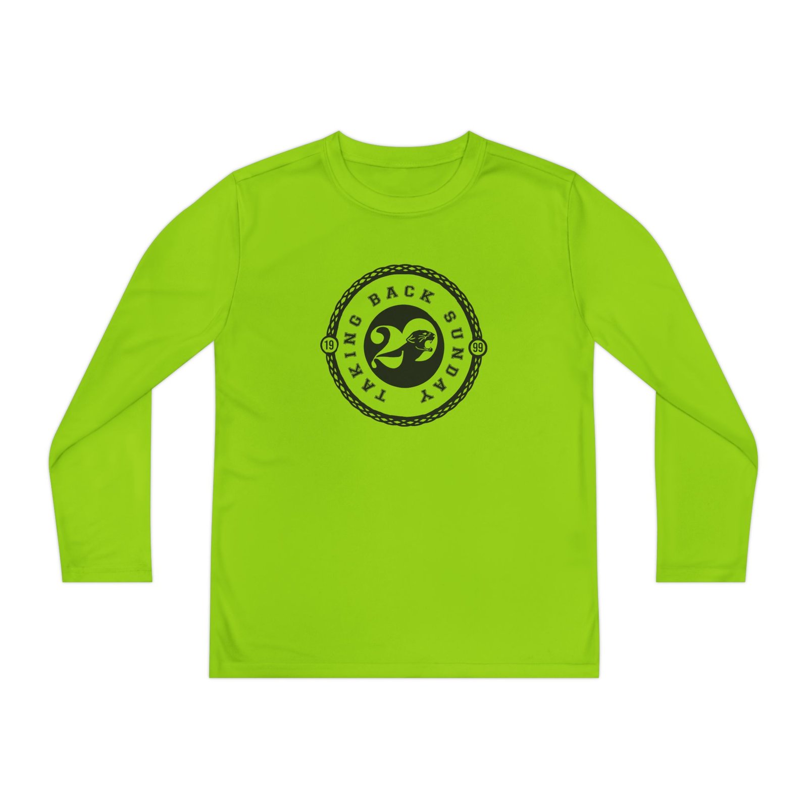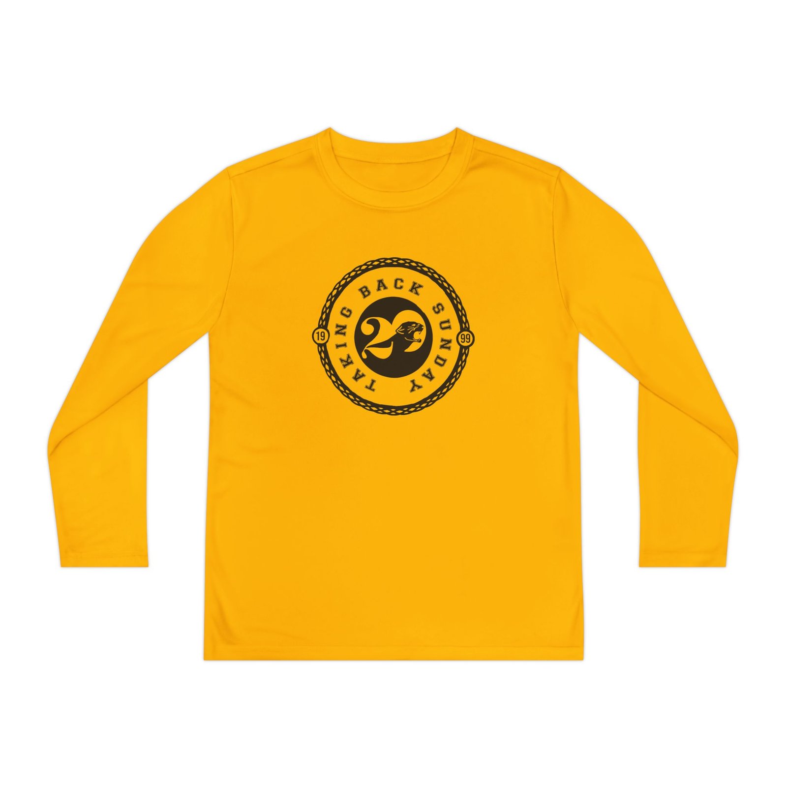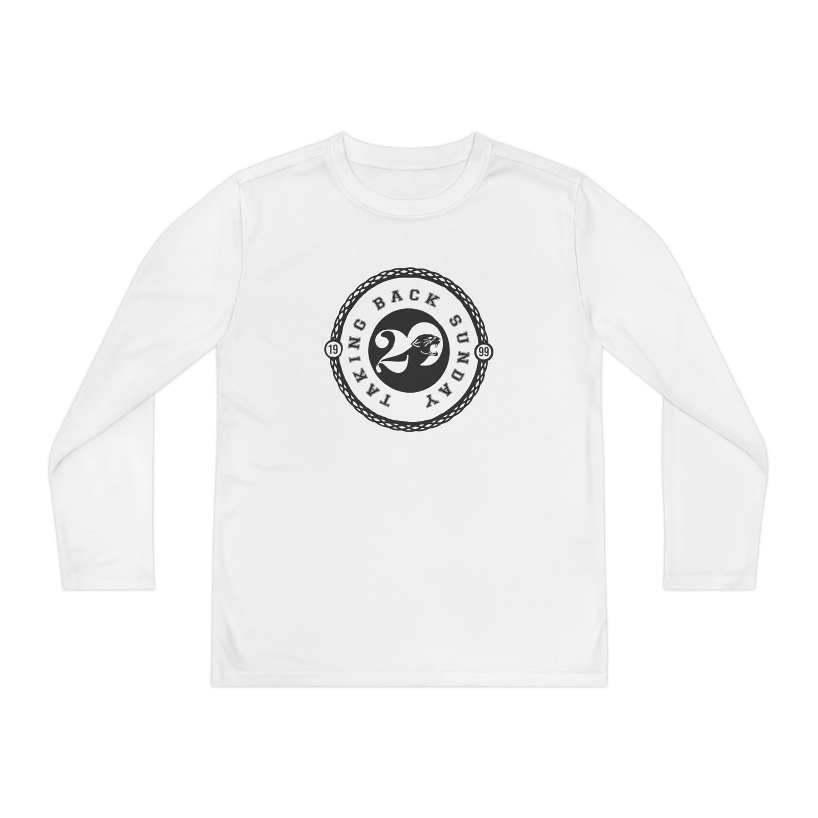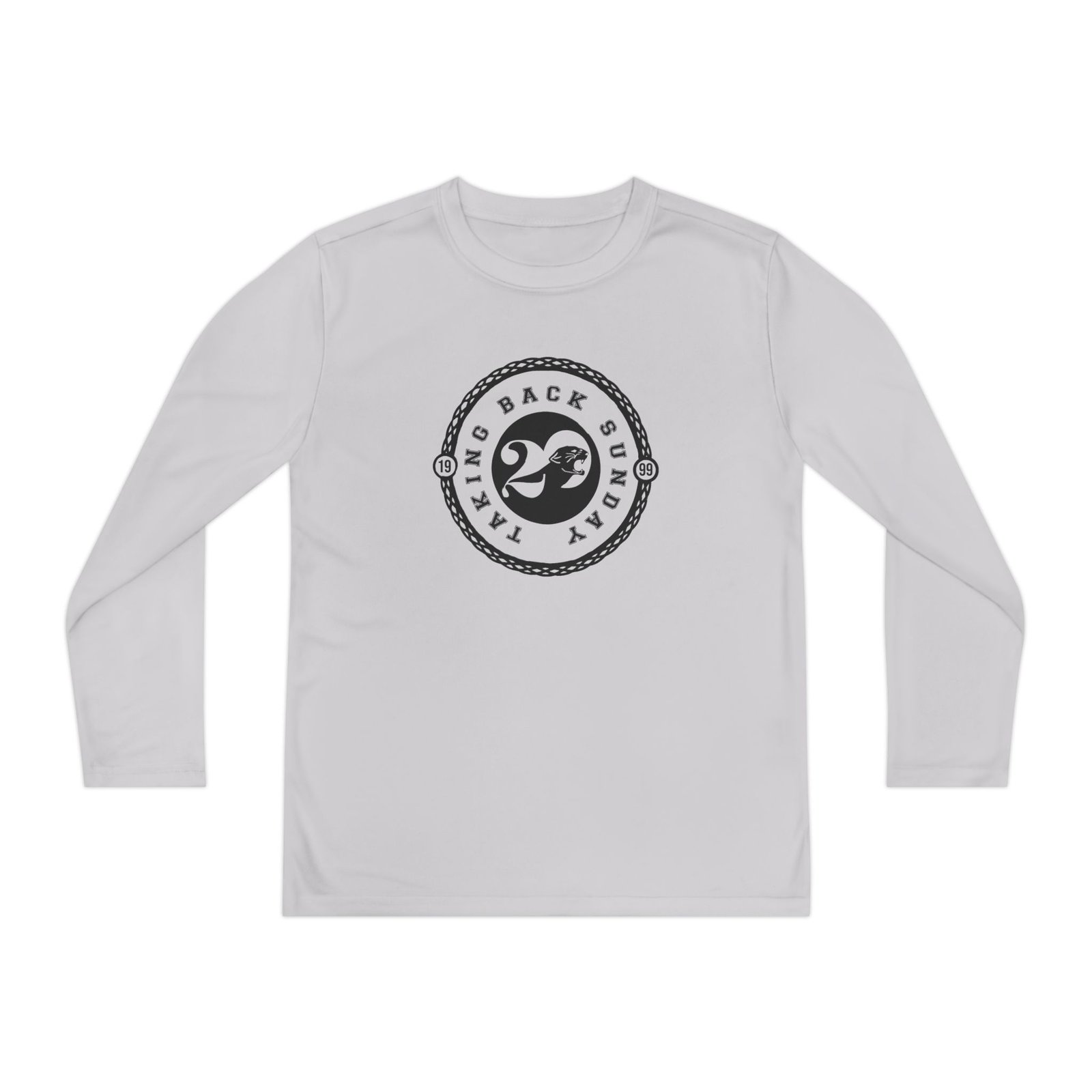 A lightweight Taking Back Sunday 20 Year long-sleeve designed for active kids who lean into darker, atmospheric style. The shirt’s smooth, moisture-wicking polyester keeps movement unhindered and dries fast after practice or a day outside. The front art drops into a stormy, grayscale scene crowned by a jagged flash of lightning and moody gothic lettering — a bold, quietly rebellious statement that pairs with skate nights, band practice, or just hanging with friends. The athletic cut skims the body for an energetic silhouette, while the tear-away label keeps comfort high. Warmth is balanced with breathability, so it layers easily under a jacket or wears solo on cooler evenings.