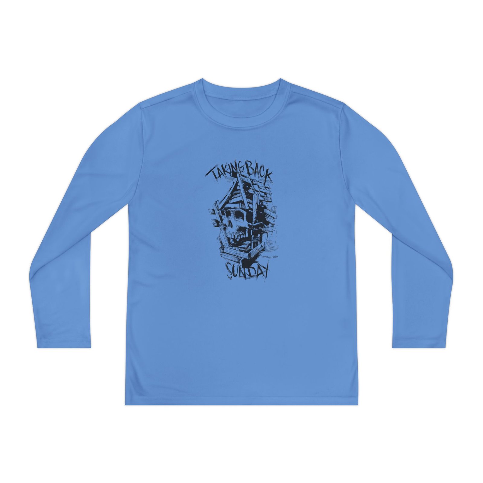 A lightweight Taking Back Sunday Authentics Tattoo Raglan long-sleeve designed for active kids who lean into darker, atmospheric style. The shirt’s smooth, moisture-wicking polyester keeps movement unhindered and dries fast after practice or a day outside. The front art drops into a stormy, grayscale scene crowned by a jagged flash of lightning and moody gothic lettering — a bold, quietly rebellious statement that pairs with skate nights, band practice, or just hanging with friends. The athletic cut skims the body for an energetic silhouette, while the tear-away label keeps comfort high. Warmth is balanced with breathability, so it layers easily under a jacket or wears solo on cooler evenings.