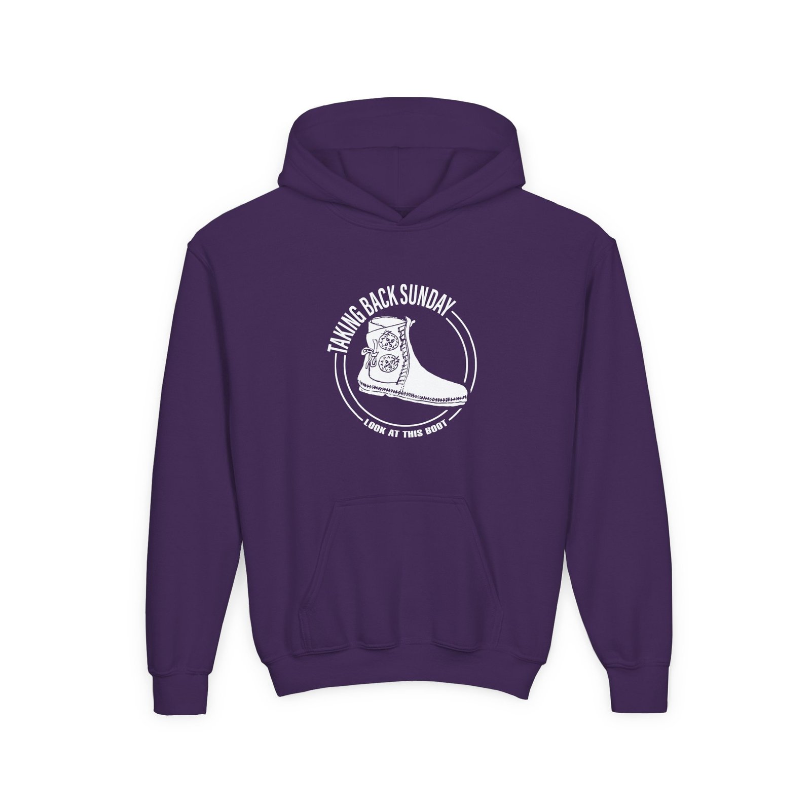Soft, comfy, and a little bit mischievous — this youth Taking Back Sunday Boot hoodie brings bright, playful energy to everyday wear. A drippy gradient smiley sits on the chest in neon orange-to-pink, framed by bold lettering that gives the design attitude without shouting. The midweight fabric holds its shape and keeps kids cozy through playground runs, chilly school mornings, and weekend hangouts. Thoughtful details like a roomy kangaroo pocket and twill neck tape make it durable and comfortable, while print and embroidery options let you add a custom touch. It’s the kind of hoodie that becomes a go-to for active days and casual adventures.