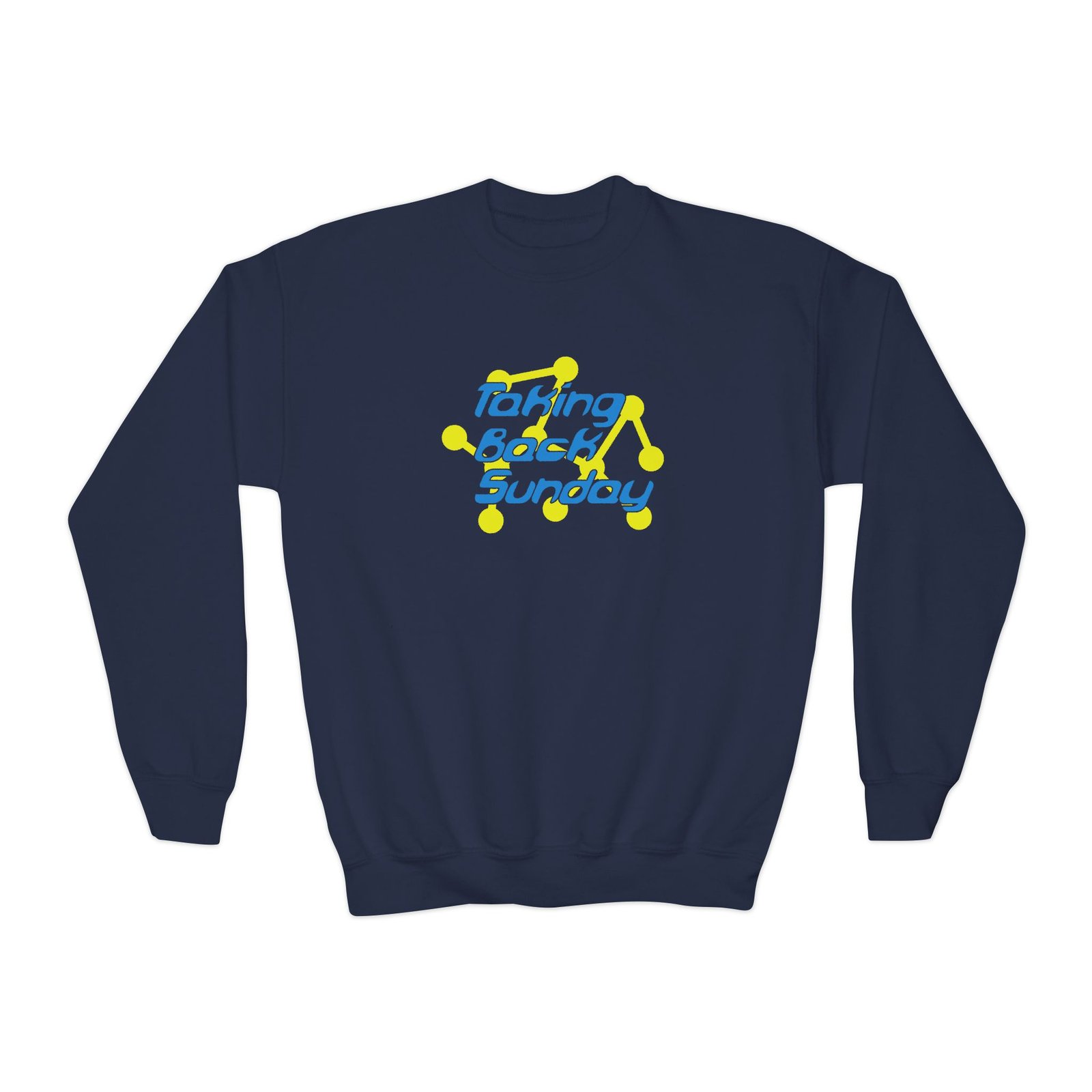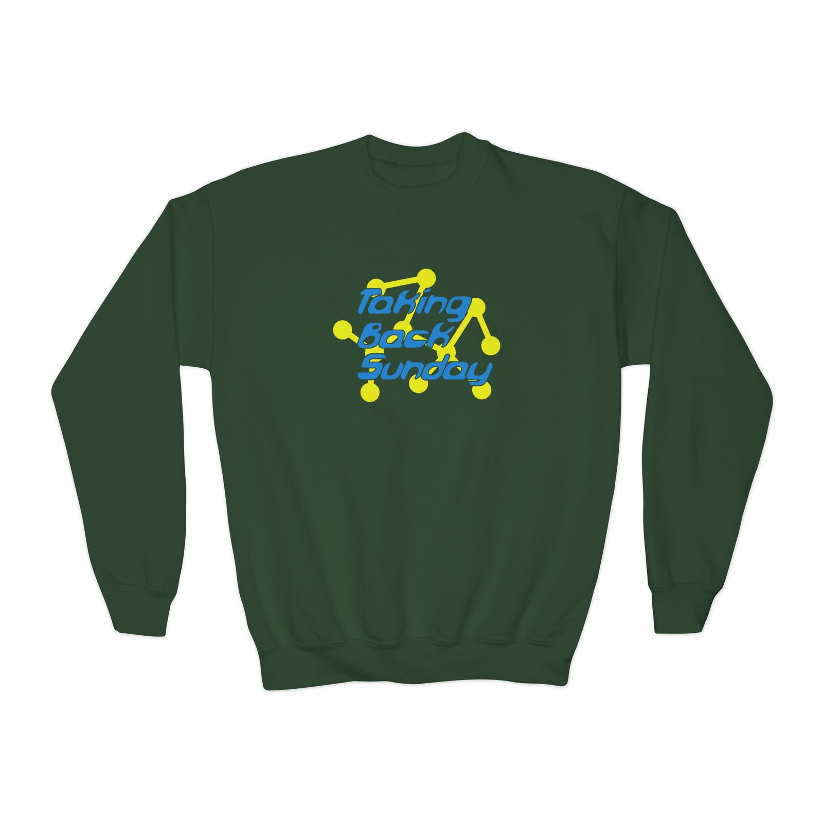 This loose-fit youth Taking Back Sunday Chain crewneck brings moody, occult-inspired style to everyday wear. A storm-lit silhouette and grainy, moonlit scene sit beneath hand-lettered gothic text in bruised purple — a look that reads like a midnight zine spread. The sweatshirt’s medium-heavy knit feels substantial without weighing down small frames, and the ribbed collar and cuffs hold their shape through play and repeat washes. Let this crew be the quiet centerpiece of a darker wardrobe: layered over band tees, hoodies, or under a denim jacket for a city-night vibe that leans mysterious and made-for-exploring.