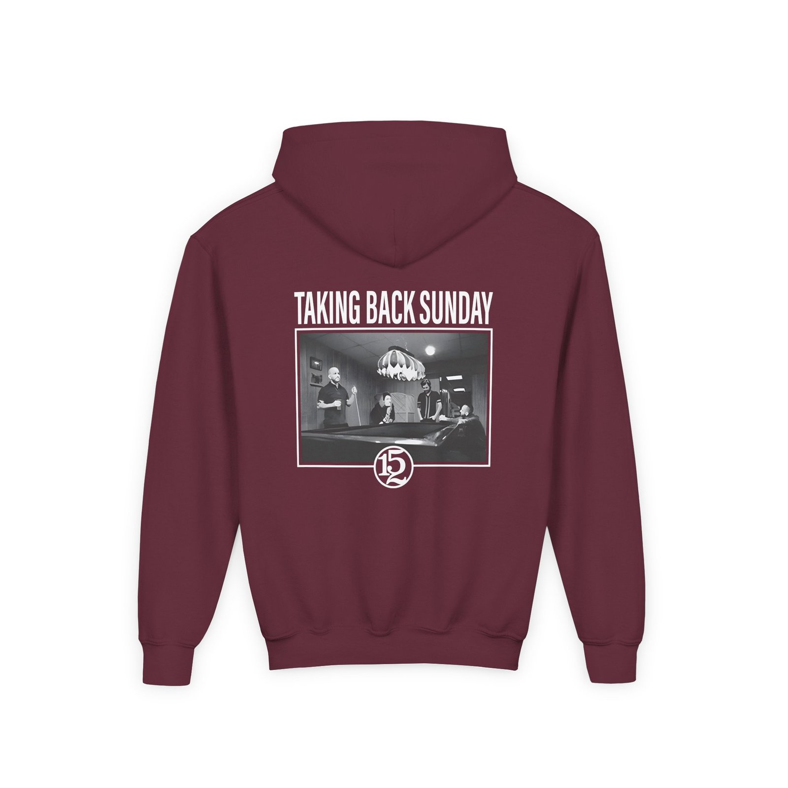 Soft, comfy, and a little bit mischievous — this youth Taking Back Sunday Eight Ball hoodie brings bright, playful energy to everyday wear. A drippy gradient smiley sits on the chest in neon orange-to-pink, framed by bold lettering that gives the design attitude without shouting. The midweight fabric holds its shape and keeps kids cozy through playground runs, chilly school mornings, and weekend hangouts. Thoughtful details like a roomy kangaroo pocket and twill neck tape make it durable and comfortable, while print and embroidery options let you add a custom touch. It’s the kind of hoodie that becomes a go-to for active days and casual adventures.