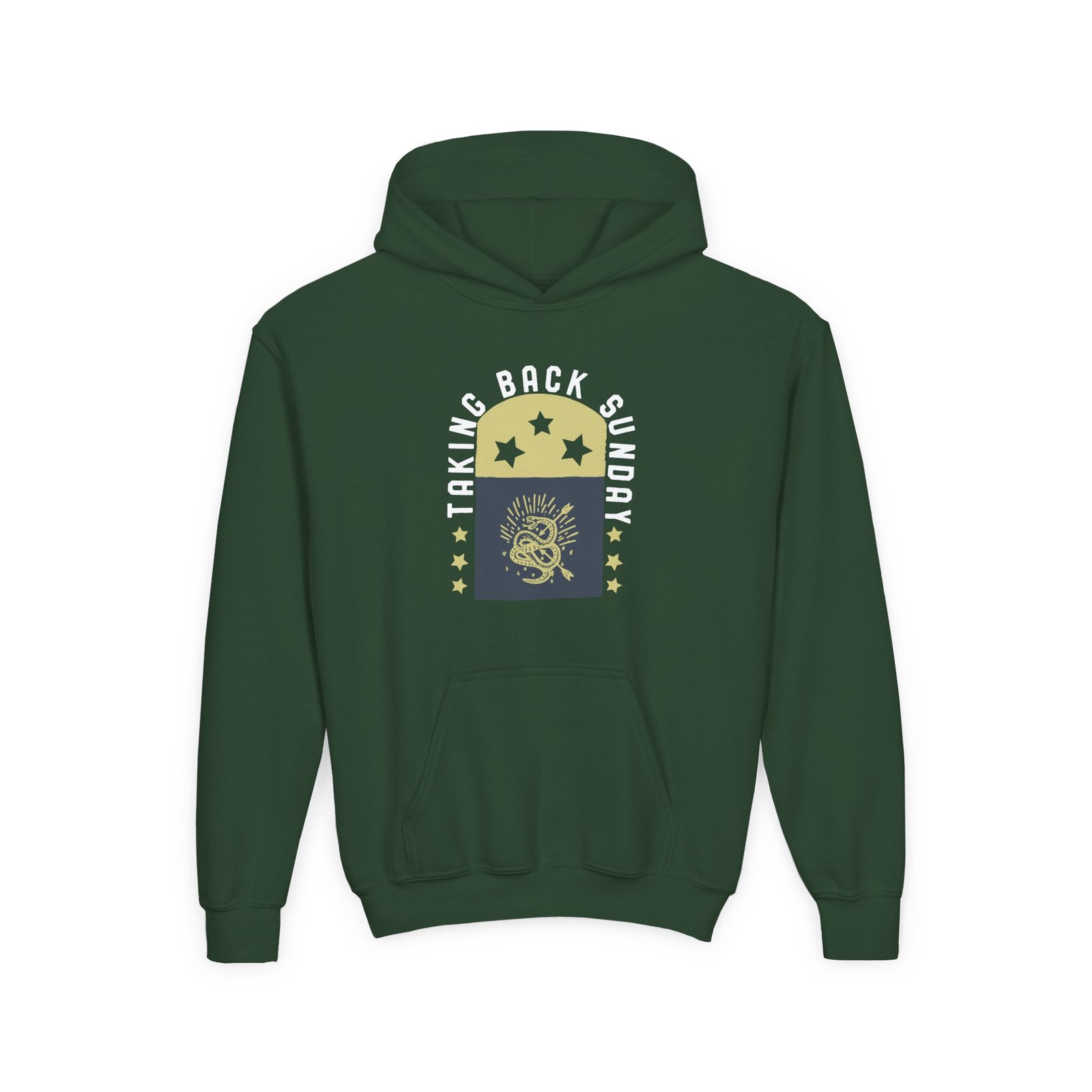 Soft, comfy, and a little bit mischievous — this youth Taking Back Sunday Star Flag hoodie brings bright, playful energy to everyday wear. A drippy gradient smiley sits on the chest in neon orange-to-pink, framed by bold lettering that gives the design attitude without shouting. The midweight fabric holds its shape and keeps kids cozy through playground runs, chilly school mornings, and weekend hangouts. Thoughtful details like a roomy kangaroo pocket and twill neck tape make it durable and comfortable, while print and embroidery options let you add a custom touch. It’s the kind of hoodie that becomes a go-to for active days and casual adventures.