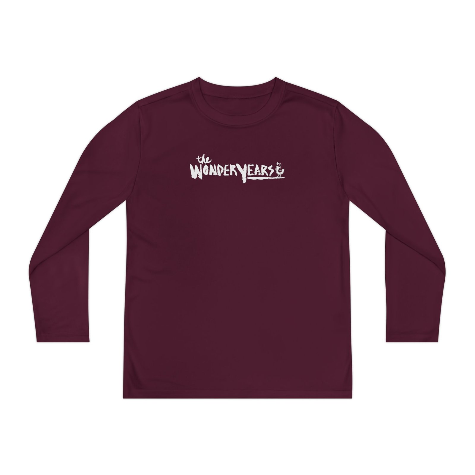 A lightweight The Wonder Years Live Shot Throwback long-sleeve designed for active kids who lean into darker, atmospheric style. The shirt’s smooth, moisture-wicking polyester keeps movement unhindered and dries fast after practice or a day outside. The front art drops into a stormy, grayscale scene crowned by a jagged flash of lightning and moody gothic lettering — a bold, quietly rebellious statement that pairs with skate nights, band practice, or just hanging with friends. The athletic cut skims the body for an energetic silhouette, while the tear-away label keeps comfort high. Warmth is balanced with breathability, so it layers easily under a jacket or wears solo on cooler evenings.