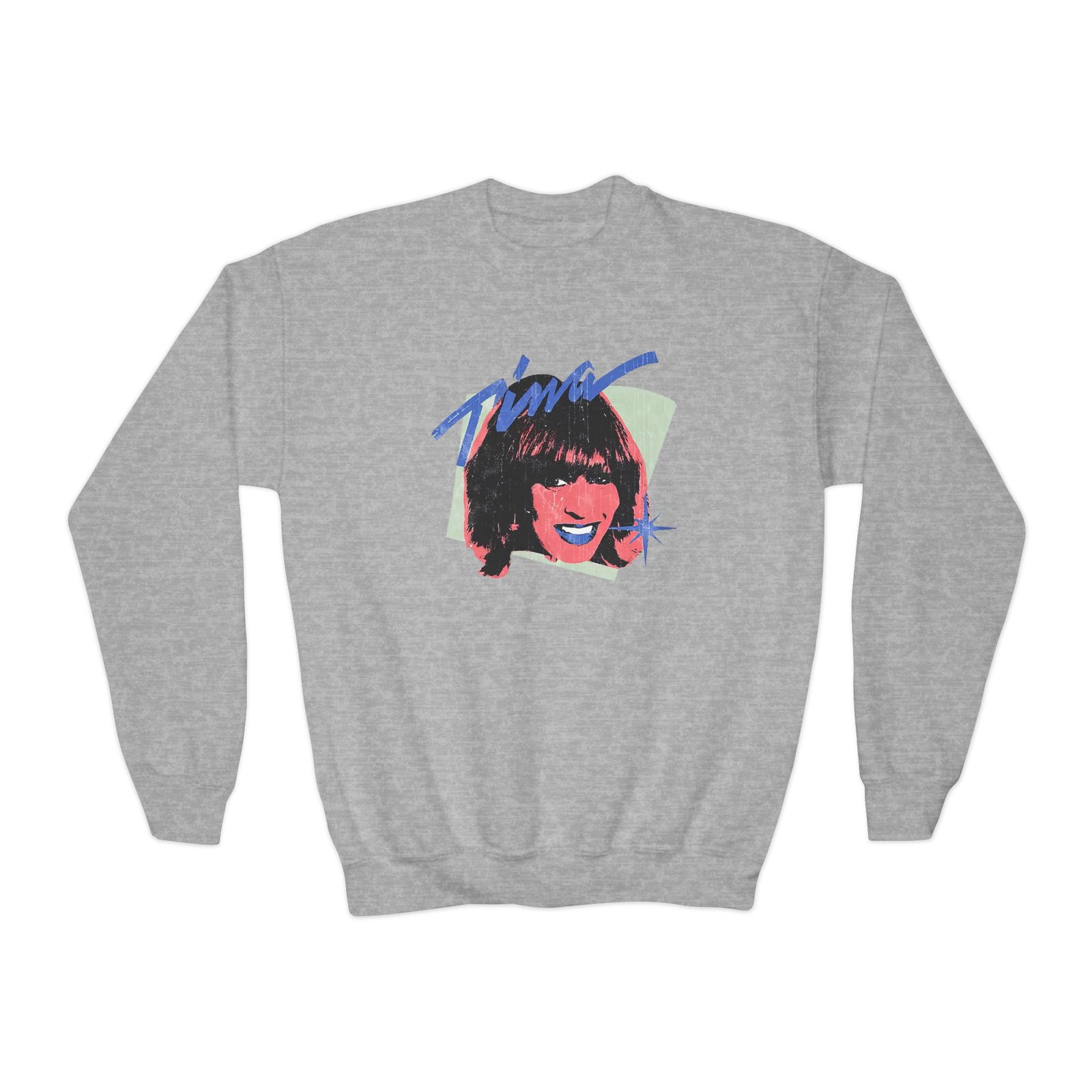 This loose-fit youth Tina Turner Portrait crewneck brings moody, occult-inspired style to everyday wear. A storm-lit silhouette and grainy, moonlit scene sit beneath hand-lettered gothic text in bruised purple — a look that reads like a midnight zine spread. The sweatshirt’s medium-heavy knit feels substantial without weighing down small frames, and the ribbed collar and cuffs hold their shape through play and repeat washes. Let this crew be the quiet centerpiece of a darker wardrobe: layered over band tees, hoodies, or under a denim jacket for a city-night vibe that leans mysterious and made-for-exploring.